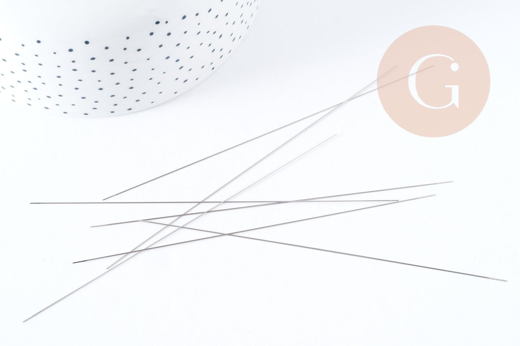 Notre aiguille de perlage en acier inoxydable avec grand œil pour enfiler des perles de rocaille, couleur platine. Spécialement conçue pour le perlage, cette aiguille de couleur platine mesure 125x0.3mm.