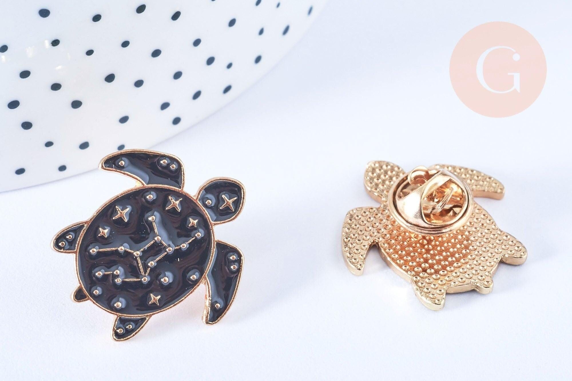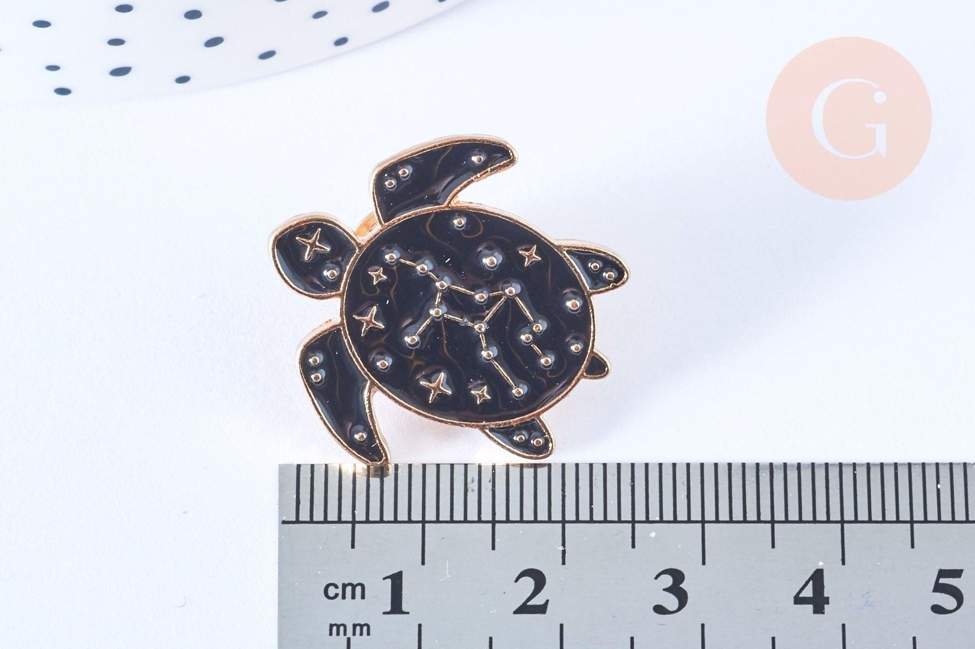 Nous vous proposons cette ravissante broche / Pin's représentant une adorable tortue décorée d'un motif mystique noir avec un fond étoilé, en zamac doré et email coloré.