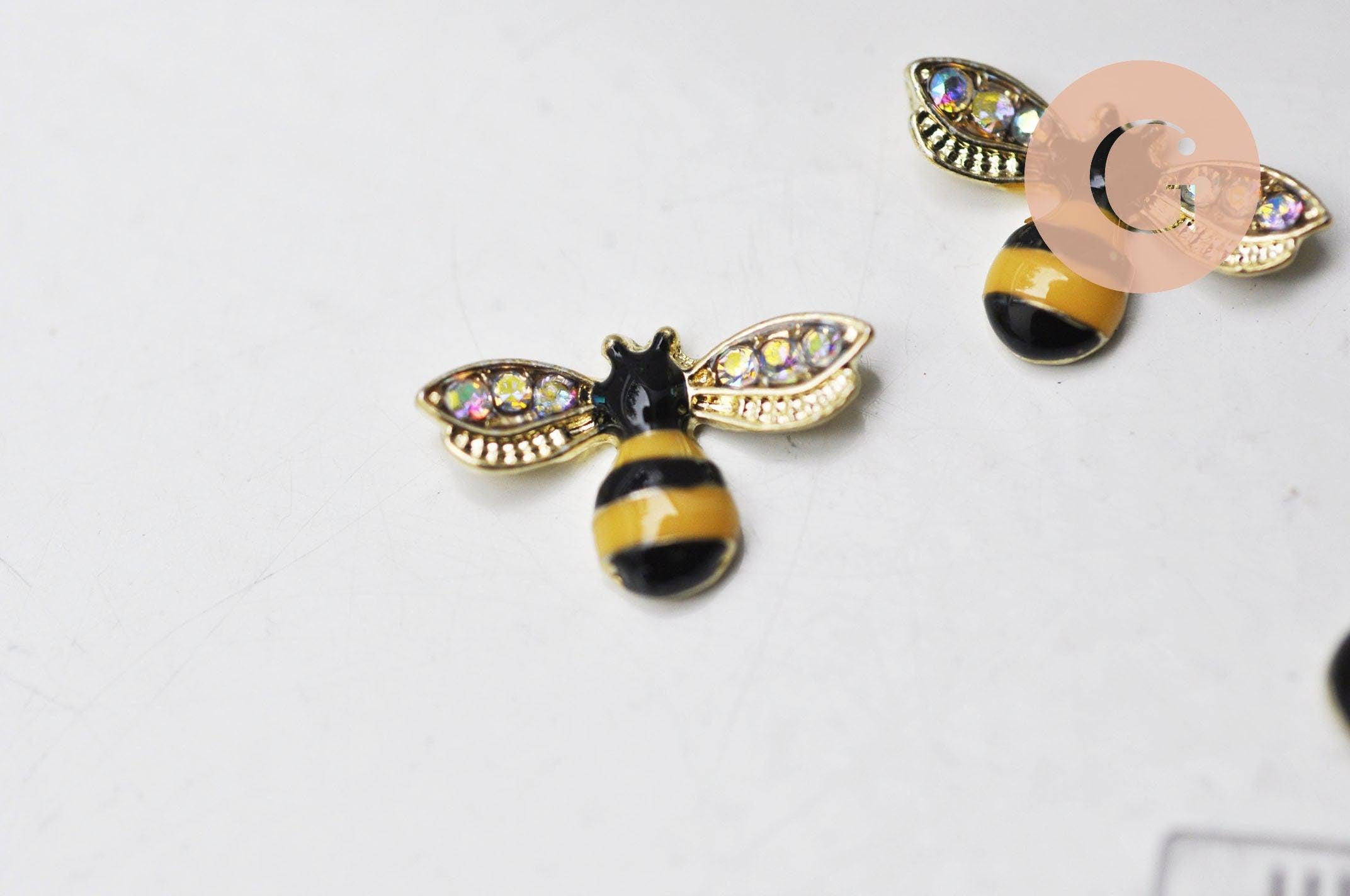 EP-Charm à coller zamac doré abeille émaillée 13.5mm, x 5 (G4752)