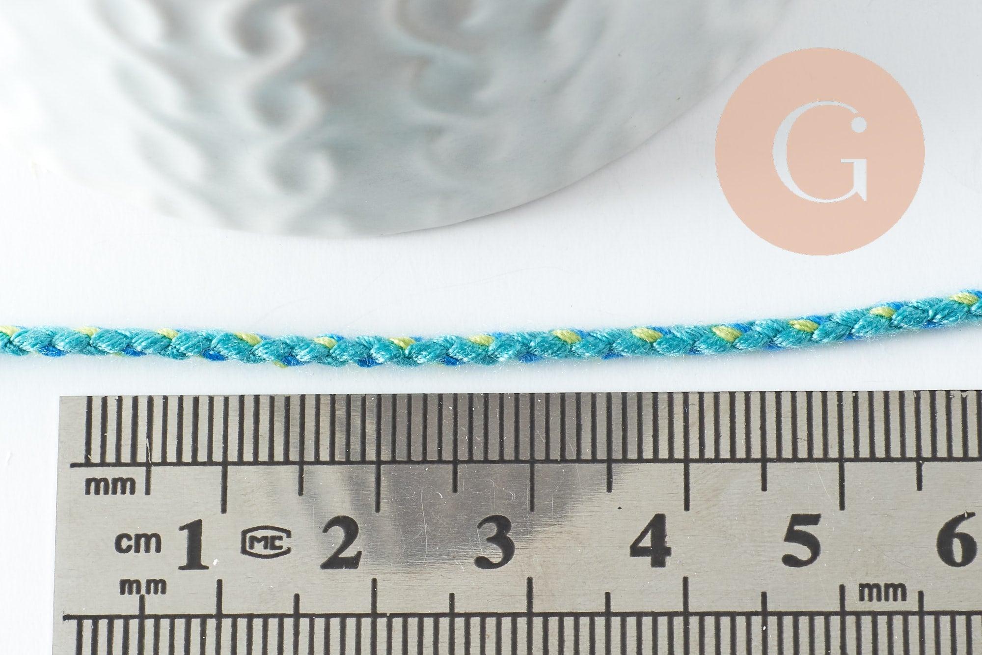 Sublimez vos créations avec notre cordon tressé turquoise de 2mm. Parfait pour une variété de projets créatifs, ce cordon polyvalent, vendu en longueur de 1 mètre, est un choix idéal pour la bijouterie, le scrapbooking, et la décoration.