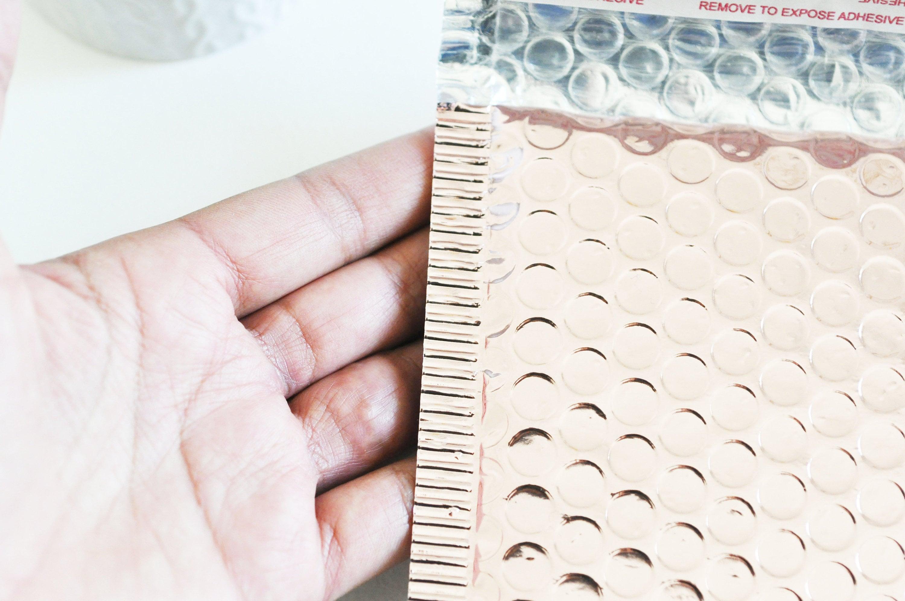 enveloppes à bulles en plastique rose clair brillant,un emballage auto-adhésif pour vos expéditions,9 pièces, 150x130mm Enveloppes très légères pour réaliser les expéditions de vos commandes. Bords soudés et autoadhésives Vendus pat lot de 9 Dimensions :150x130mm Suggestion de présentation, photos...