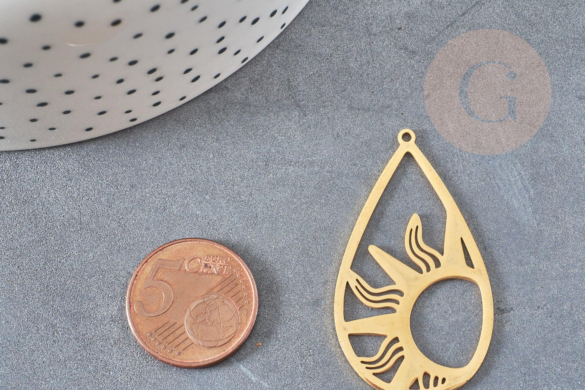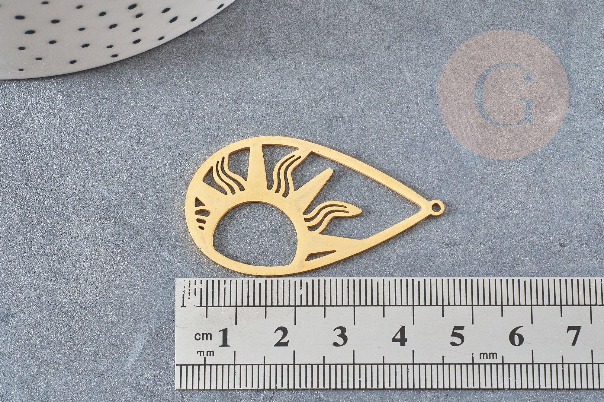 Un pendentif en acier doré en forme de goutte et de rayon de soleil .