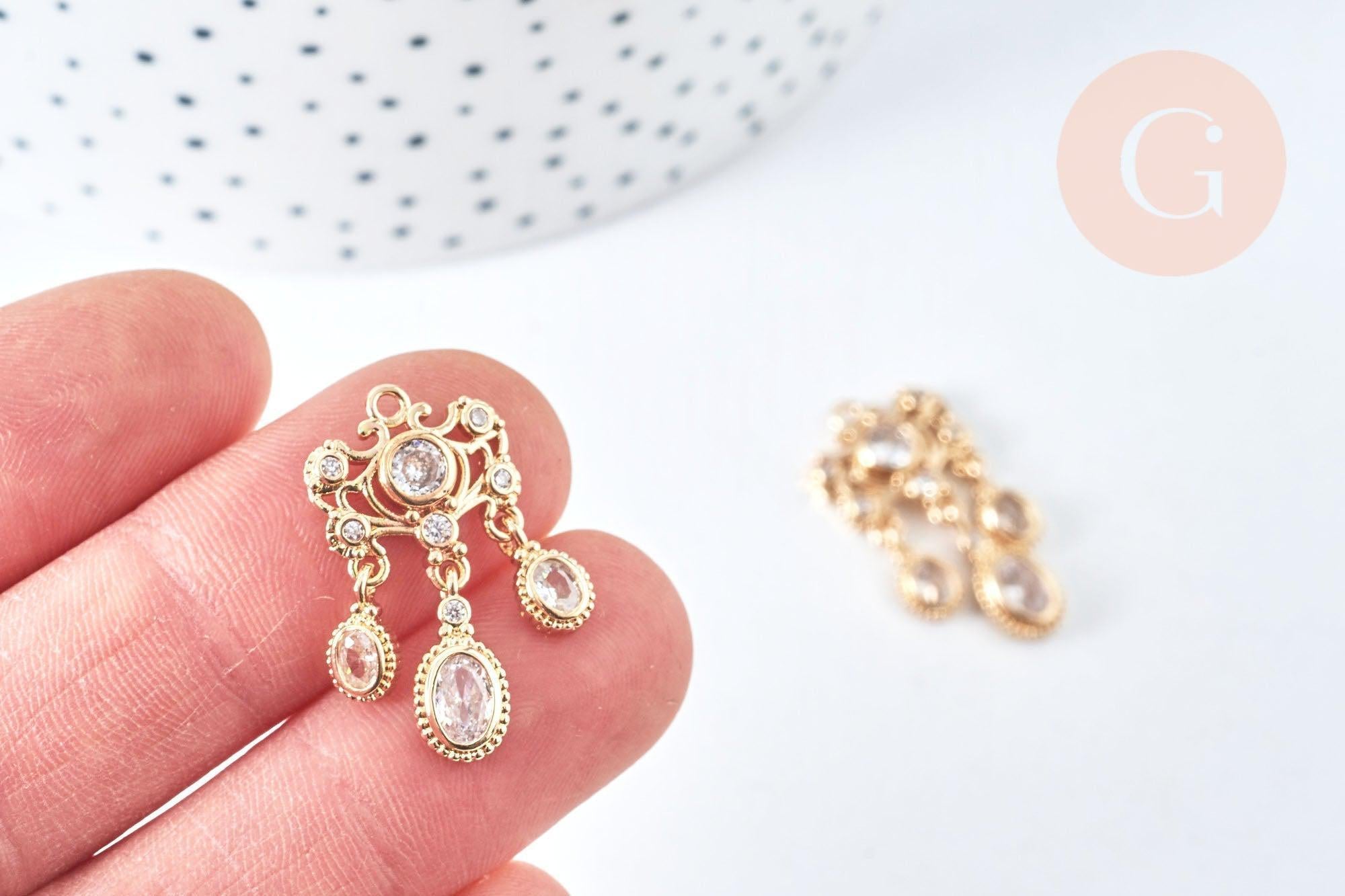 En quelques minutes, grâce à ce pendentif en laiton doré, fabriquez vos bijoux fantaisie DIY chics et élégants. Il est composé de zircons cubiques muni d'un anneau soudé, prêt à être porté sur une chaîne ou un cordon de votre choix.