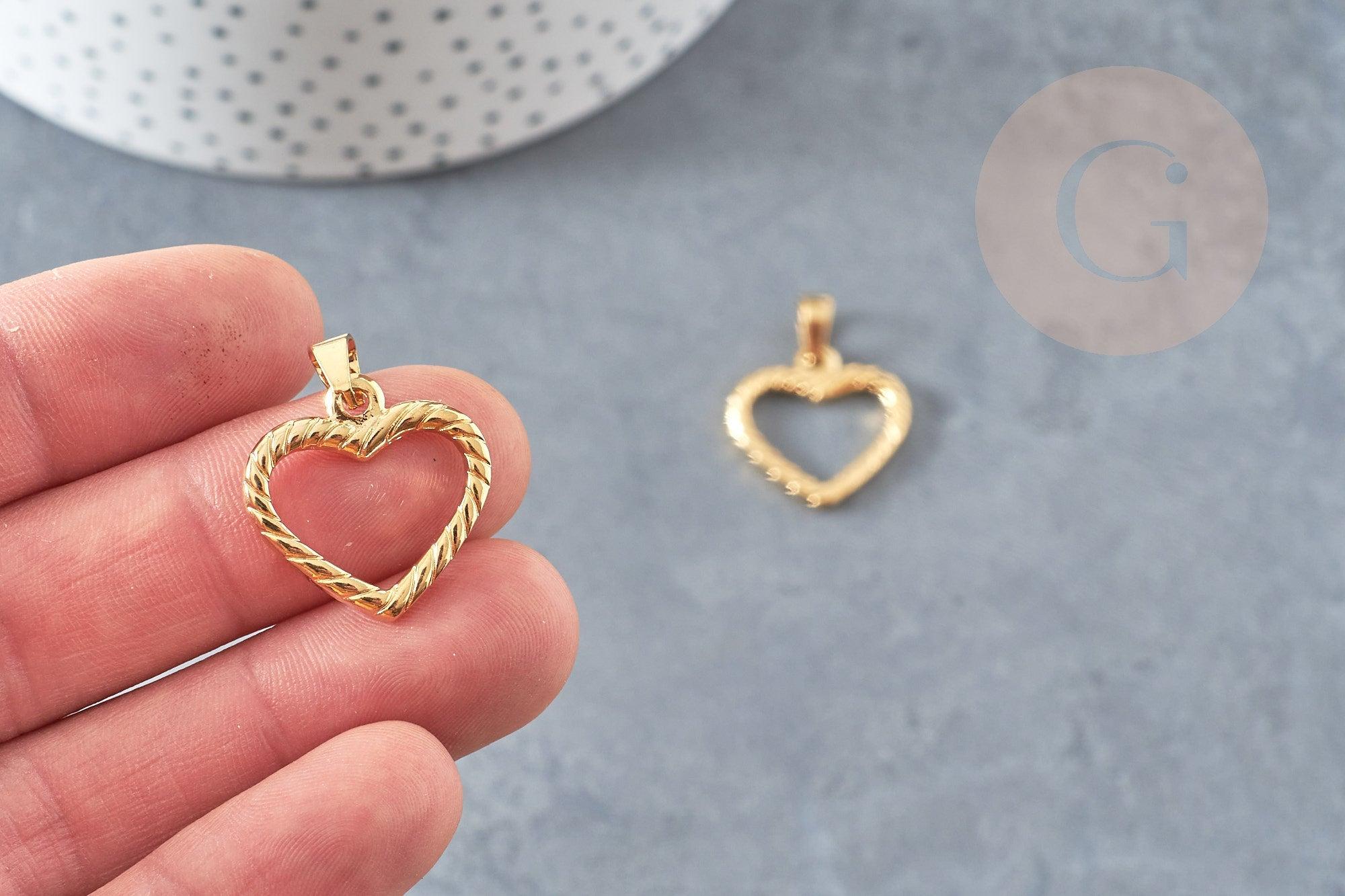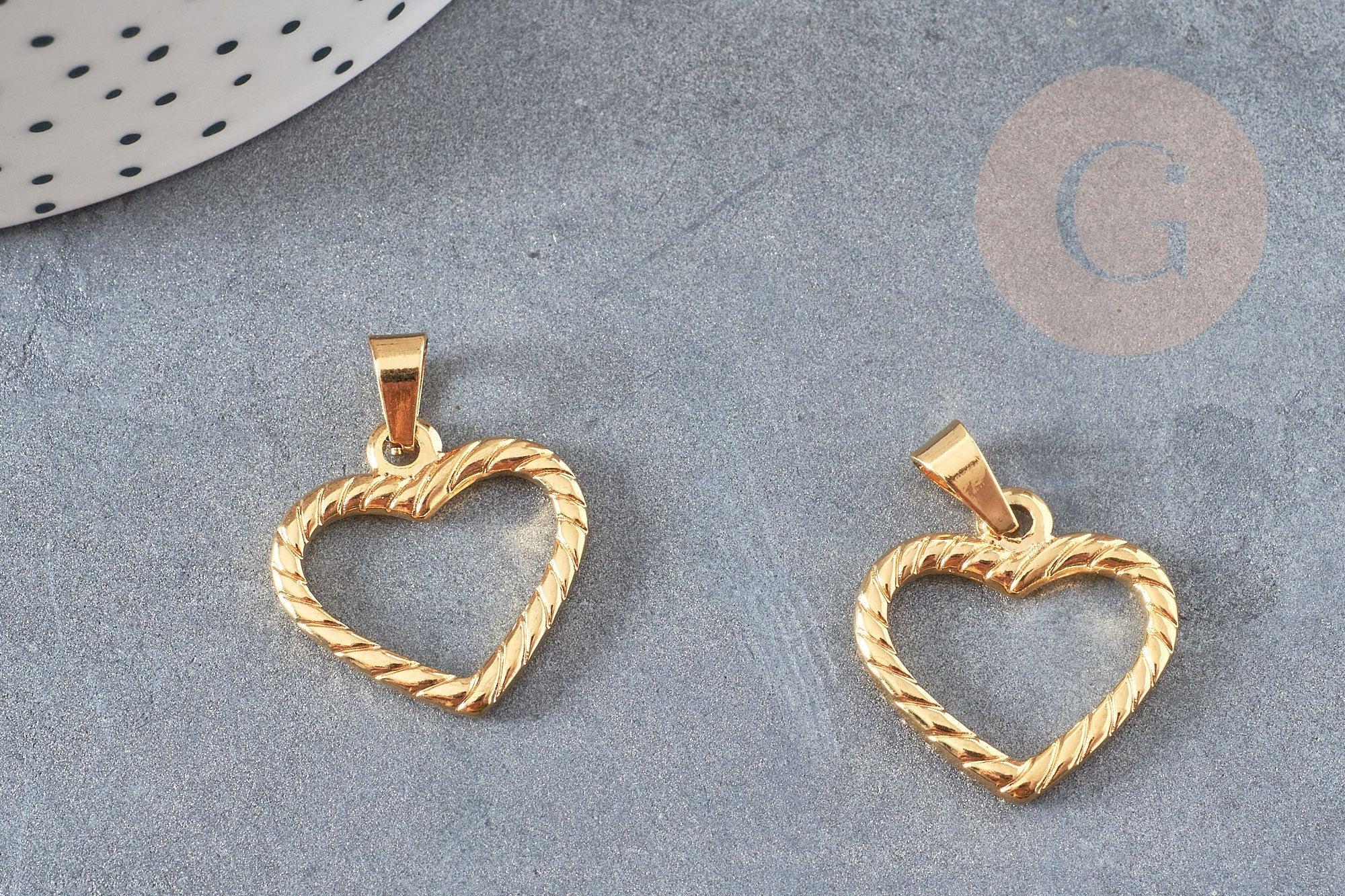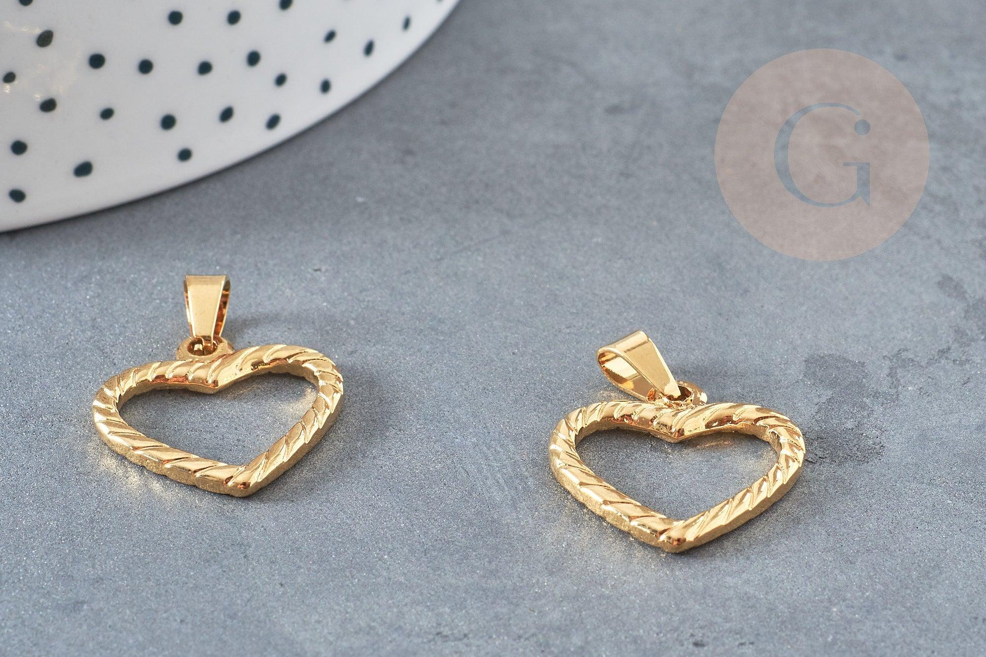 Une jolie médaille dorée représentant un cœur strié, un pendentif d'amour à combiner à nos chaines en acier doré