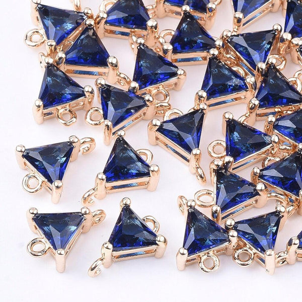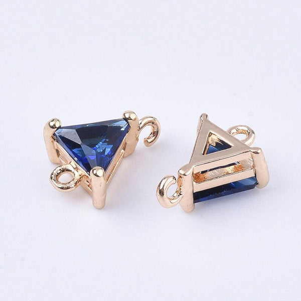 EP-Pendentif connecteur triangle doré cristal bleu saphir 11x8mm, x1 (G5889)