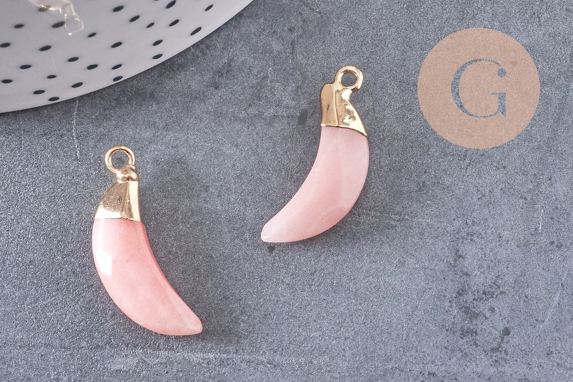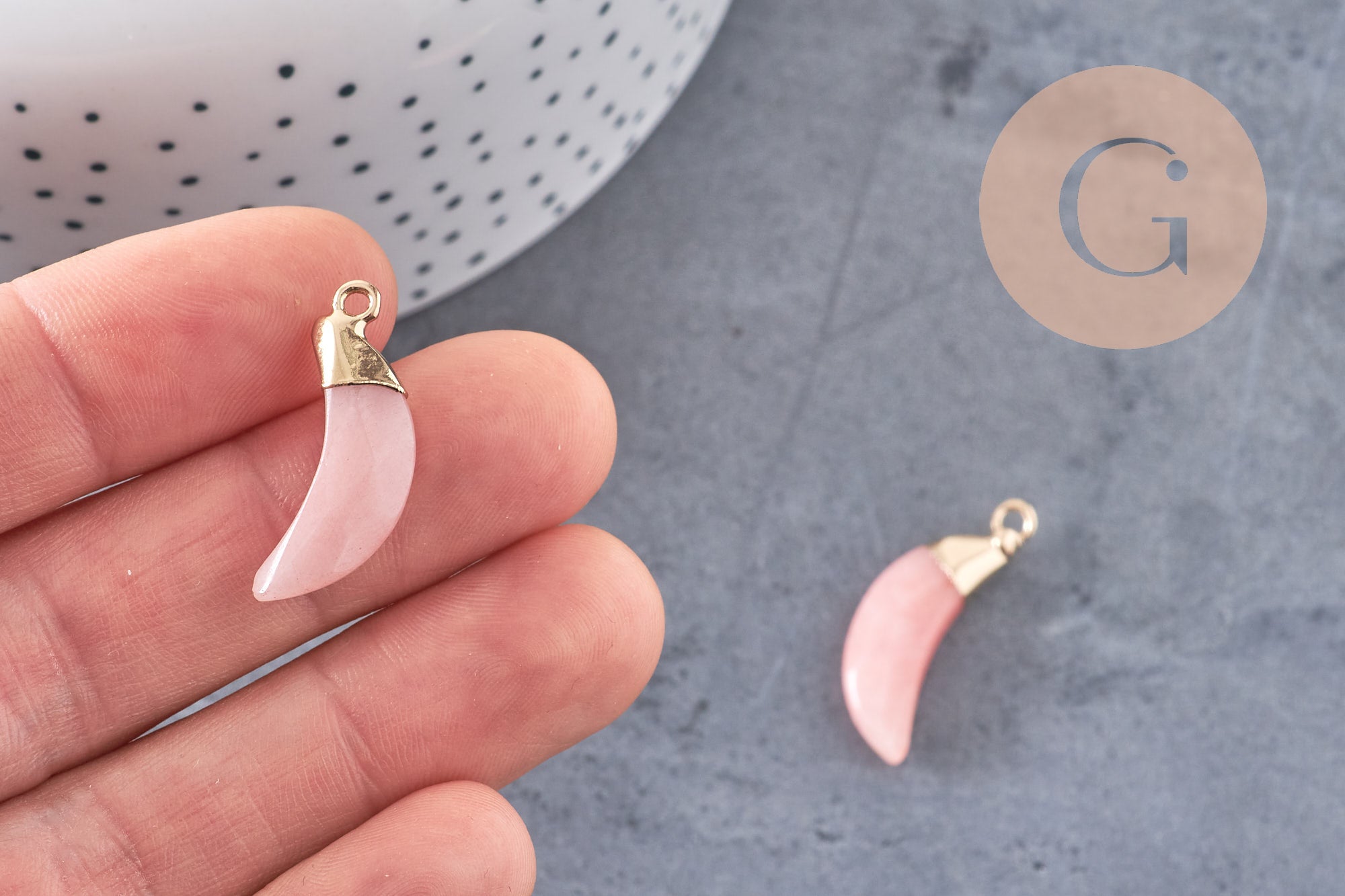 Pendentif corne jade rose,jade rose,pendentif bijoux, jade naturelle, pendentif jade,26mm x1 (G1131)