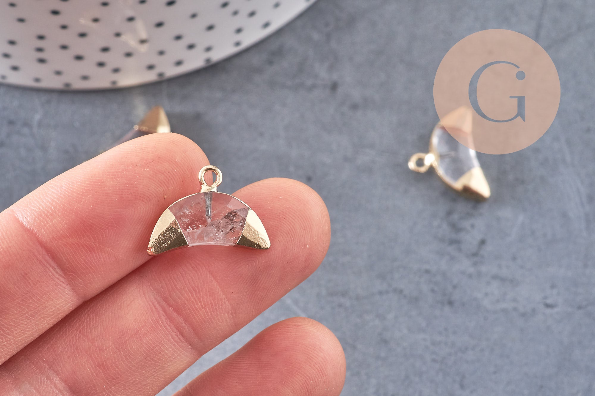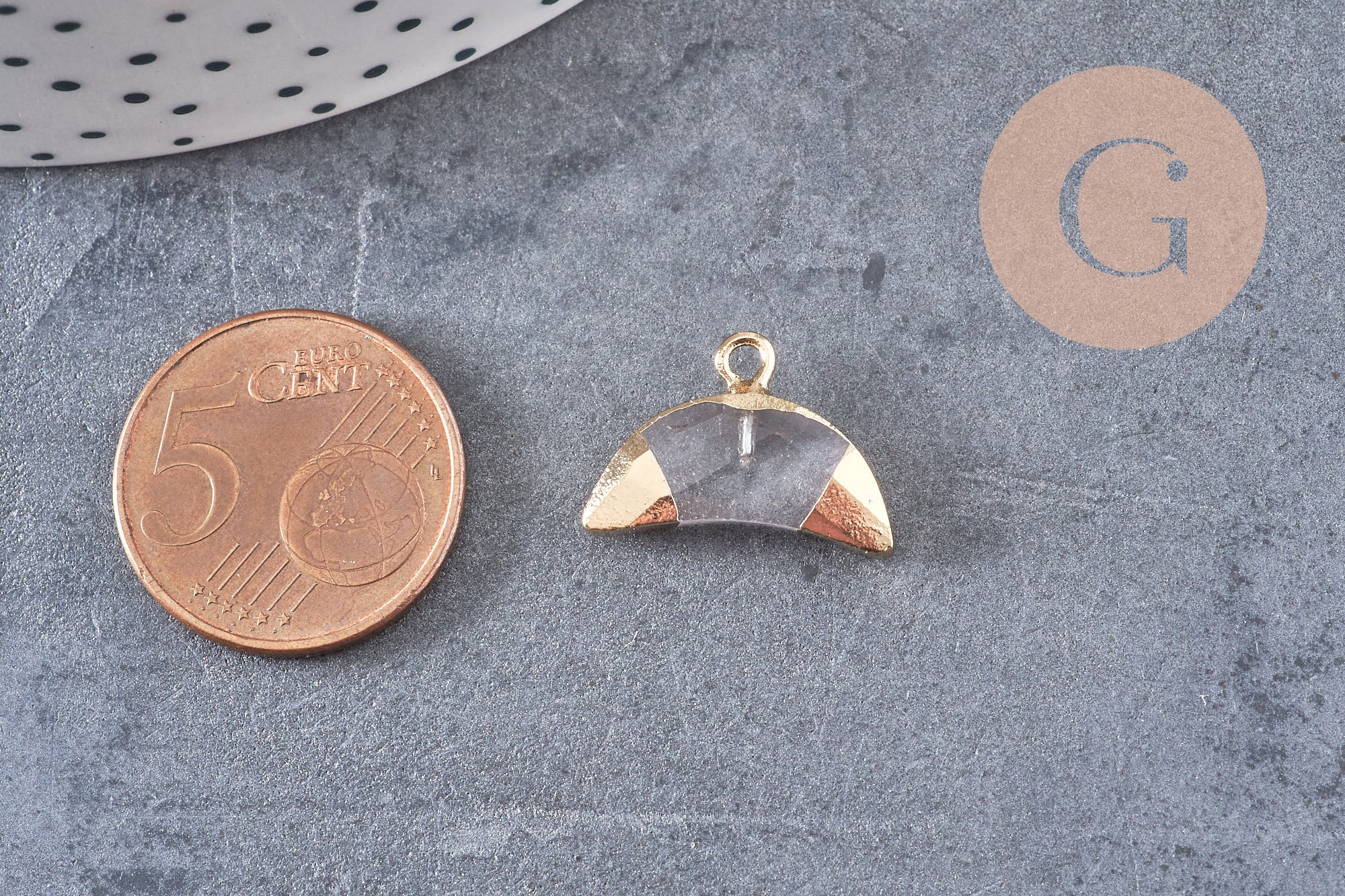 Pendentif croissant lune cristal de roche doré,pendentif bijoux,lune cristal naturel,18mm x1 (G1207)