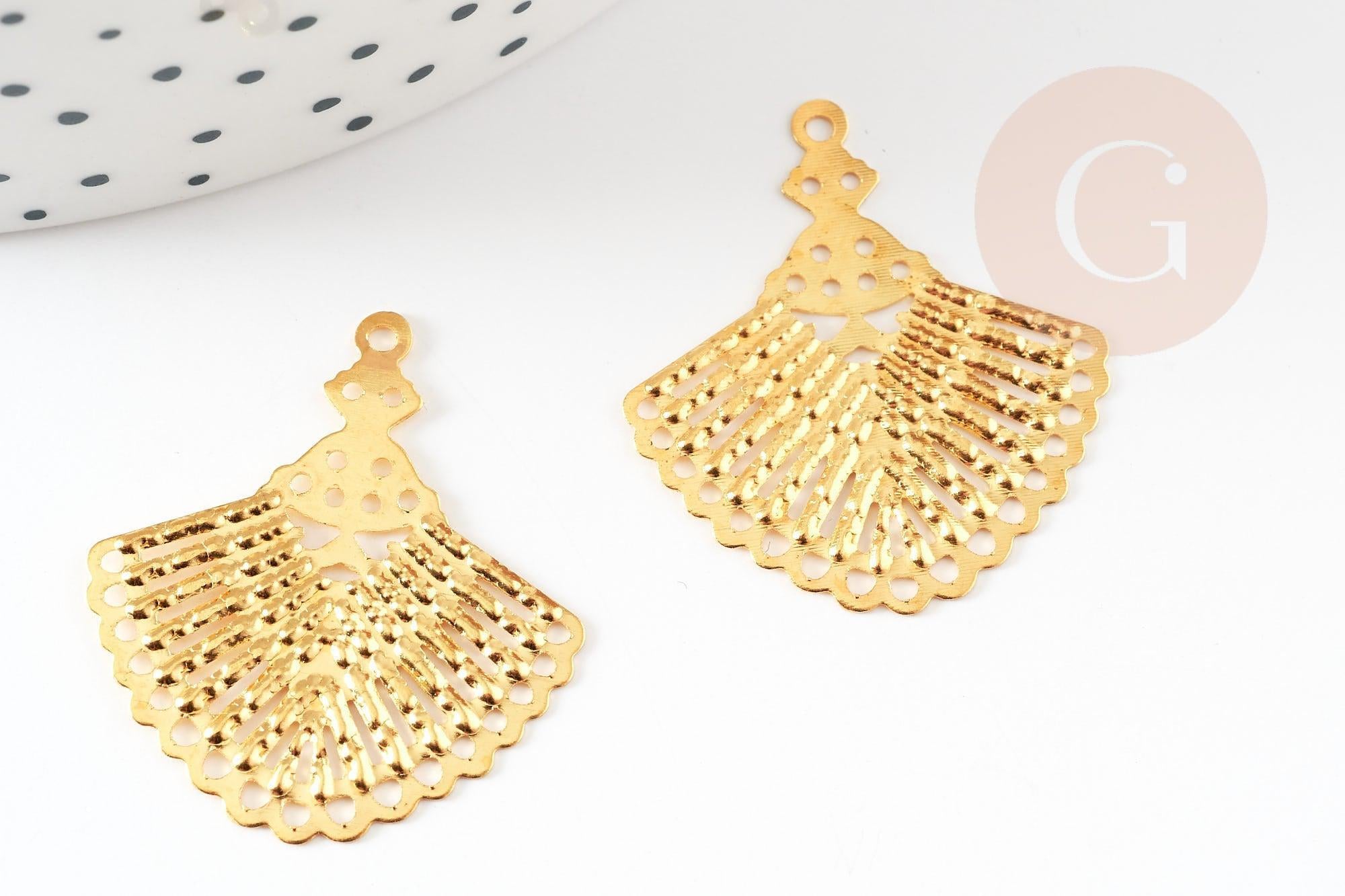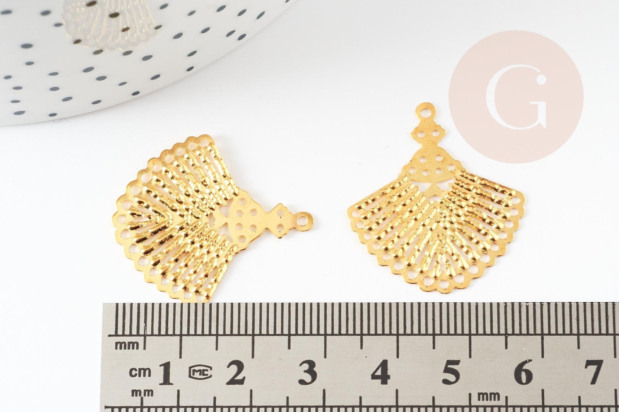 Pendentif éventail doré filigrane fer doré, pendentif création bijoux, pendentif doré, 28.5mm,lot de 10