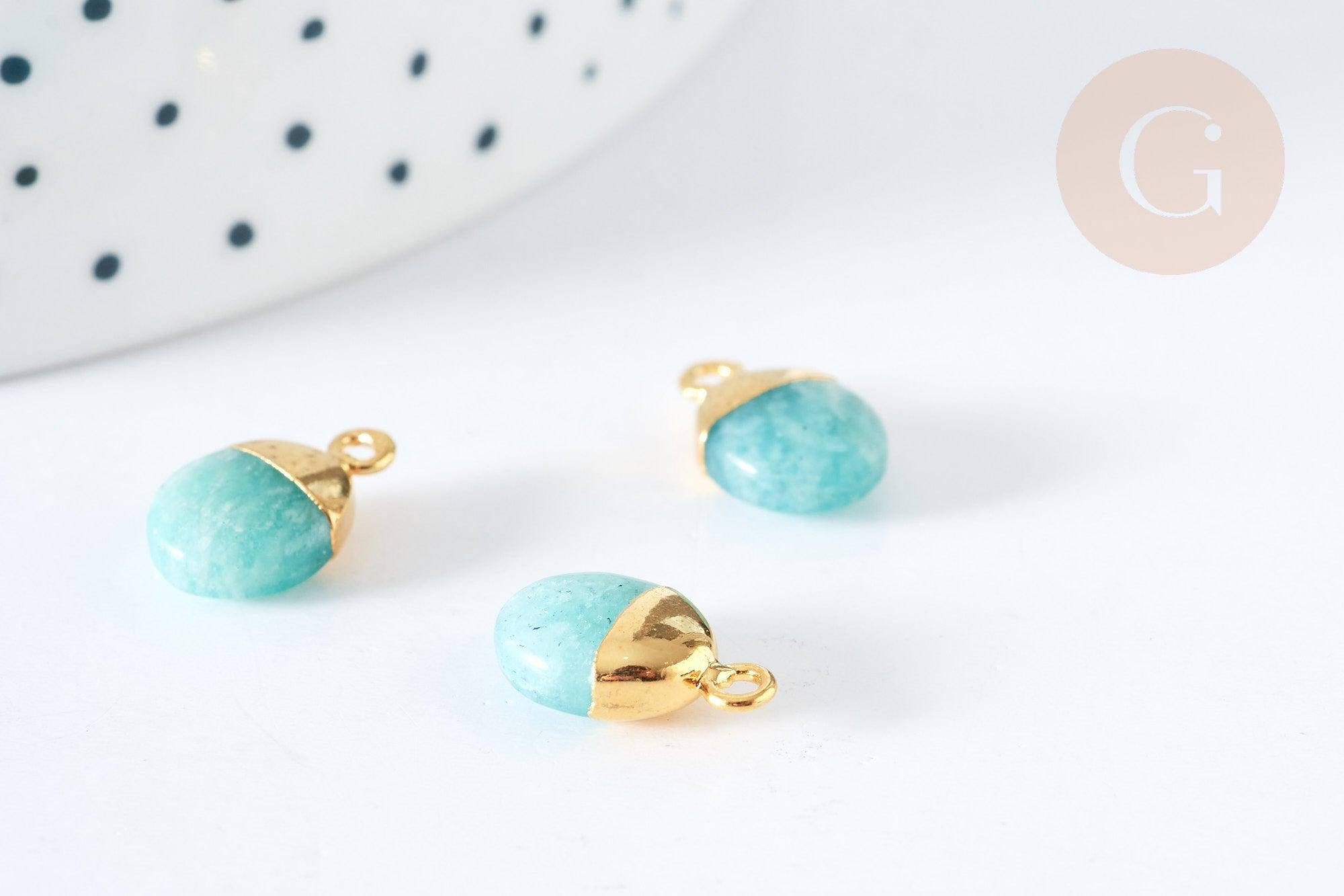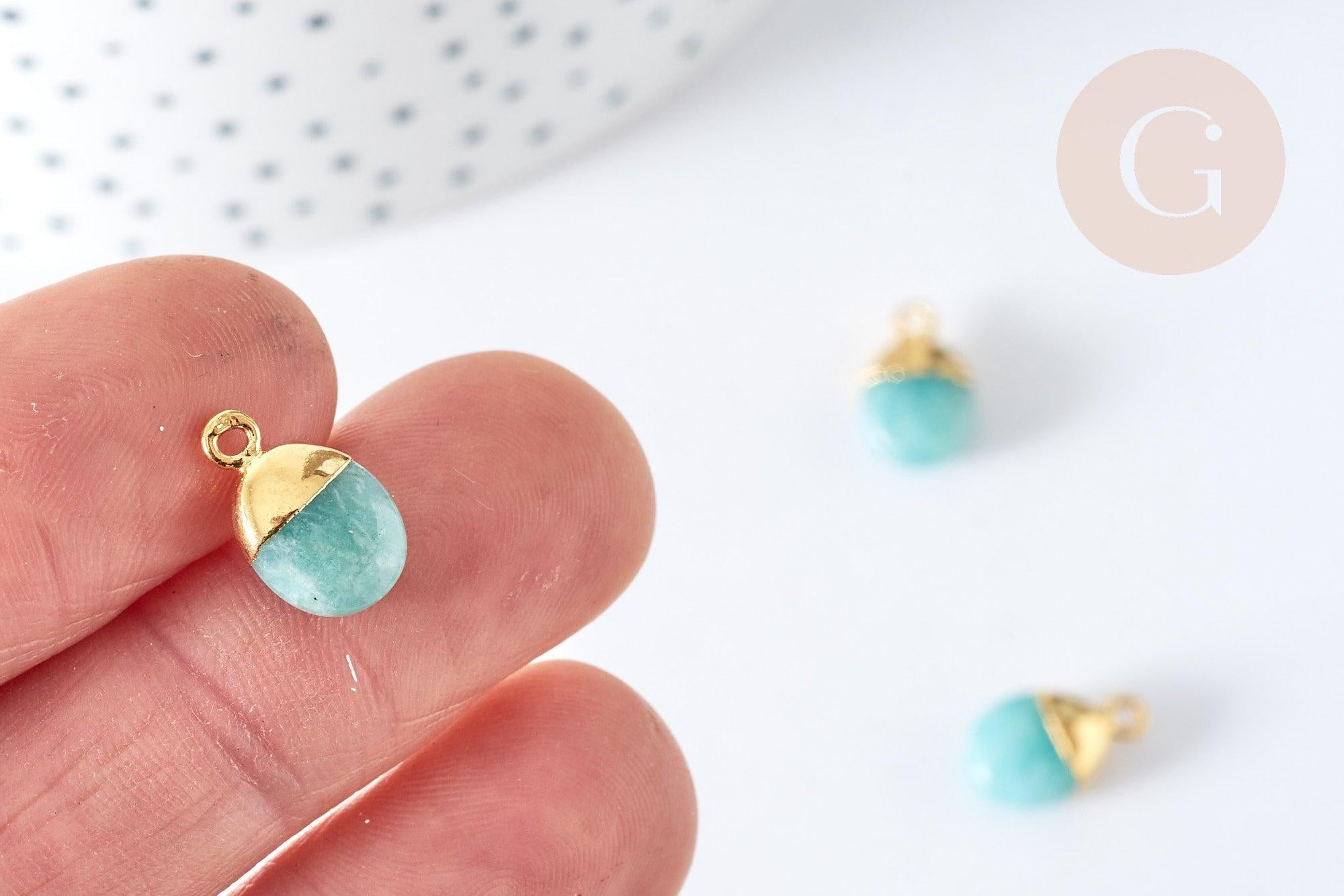 Craquez pour ce pendentif goutte en amazonite naturelle avec son support en argent 925 massif doré18K