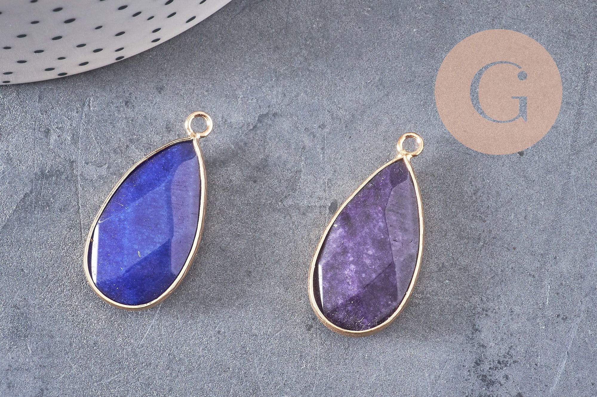 Pendentif goutte jade violet doré, fournitures créatives,pendentif jade, pendentif pierre,jade naturel, jade teinté bleu,33mm