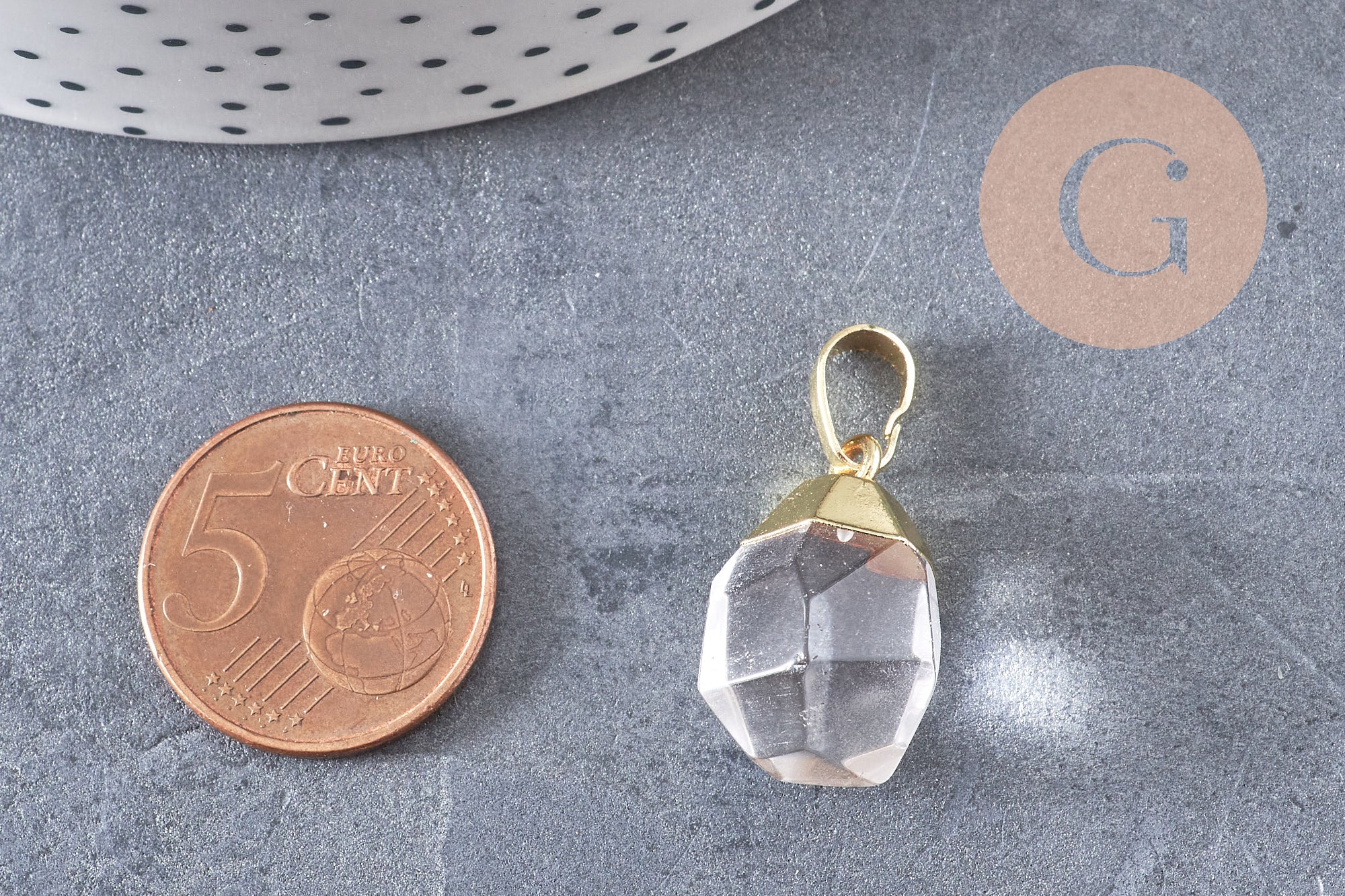 le pendentif est équipé d'une bélière dorée en laiton doré