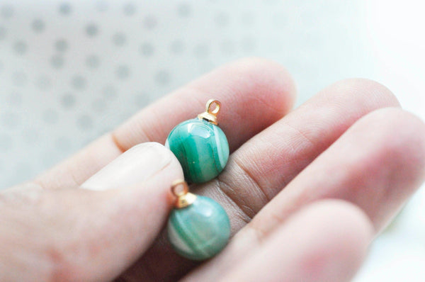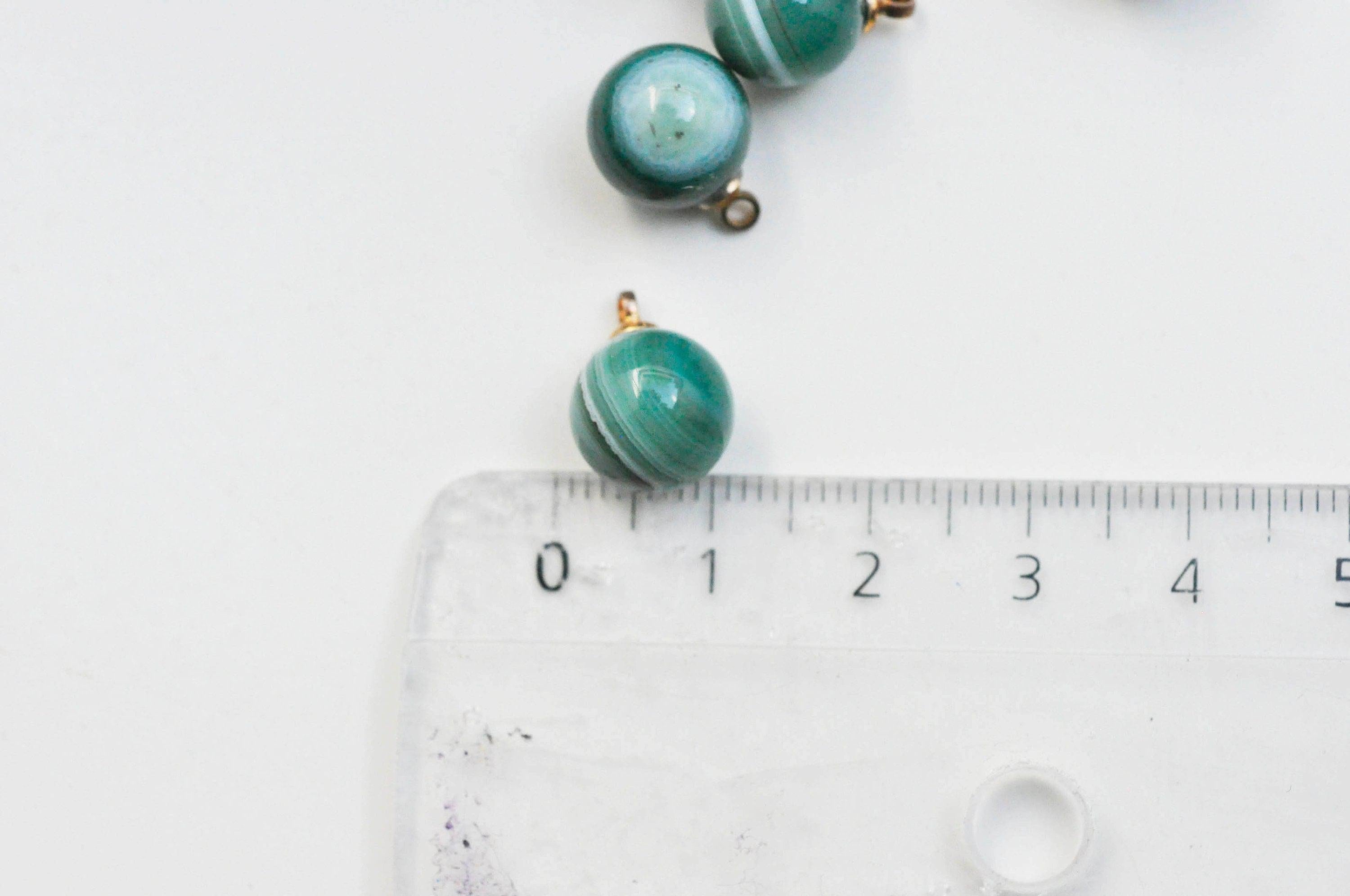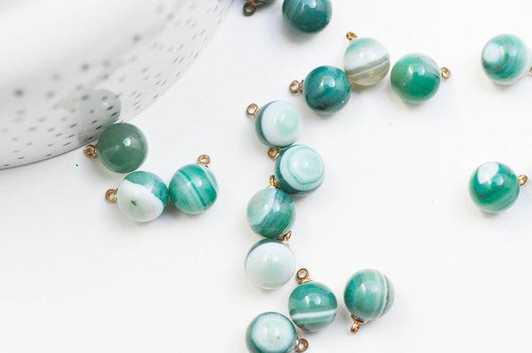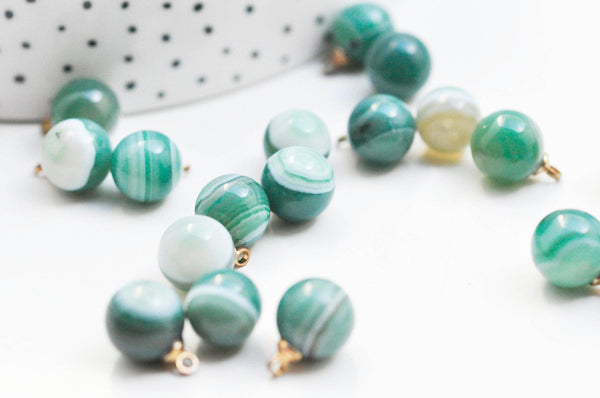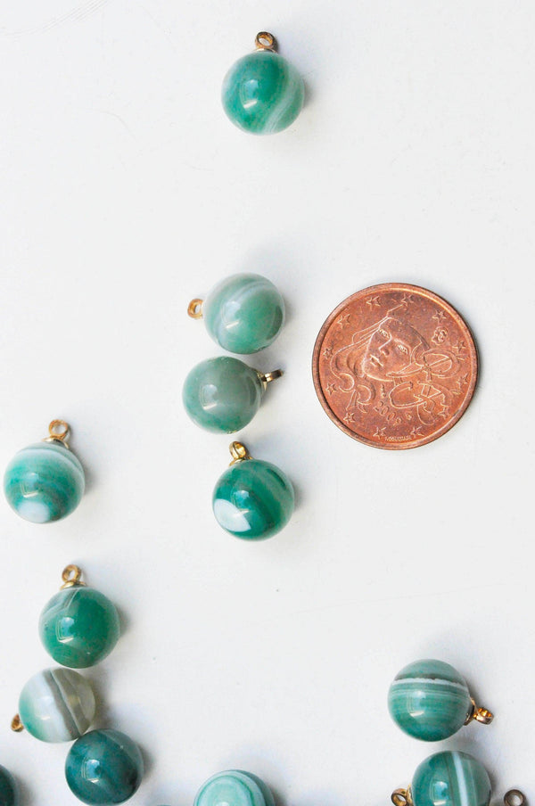 Pendentif goutte rond agate verte rayée, support doré, création bijoux pierre naturelle, pendentif pierre naturelle, 14mm, l'unité