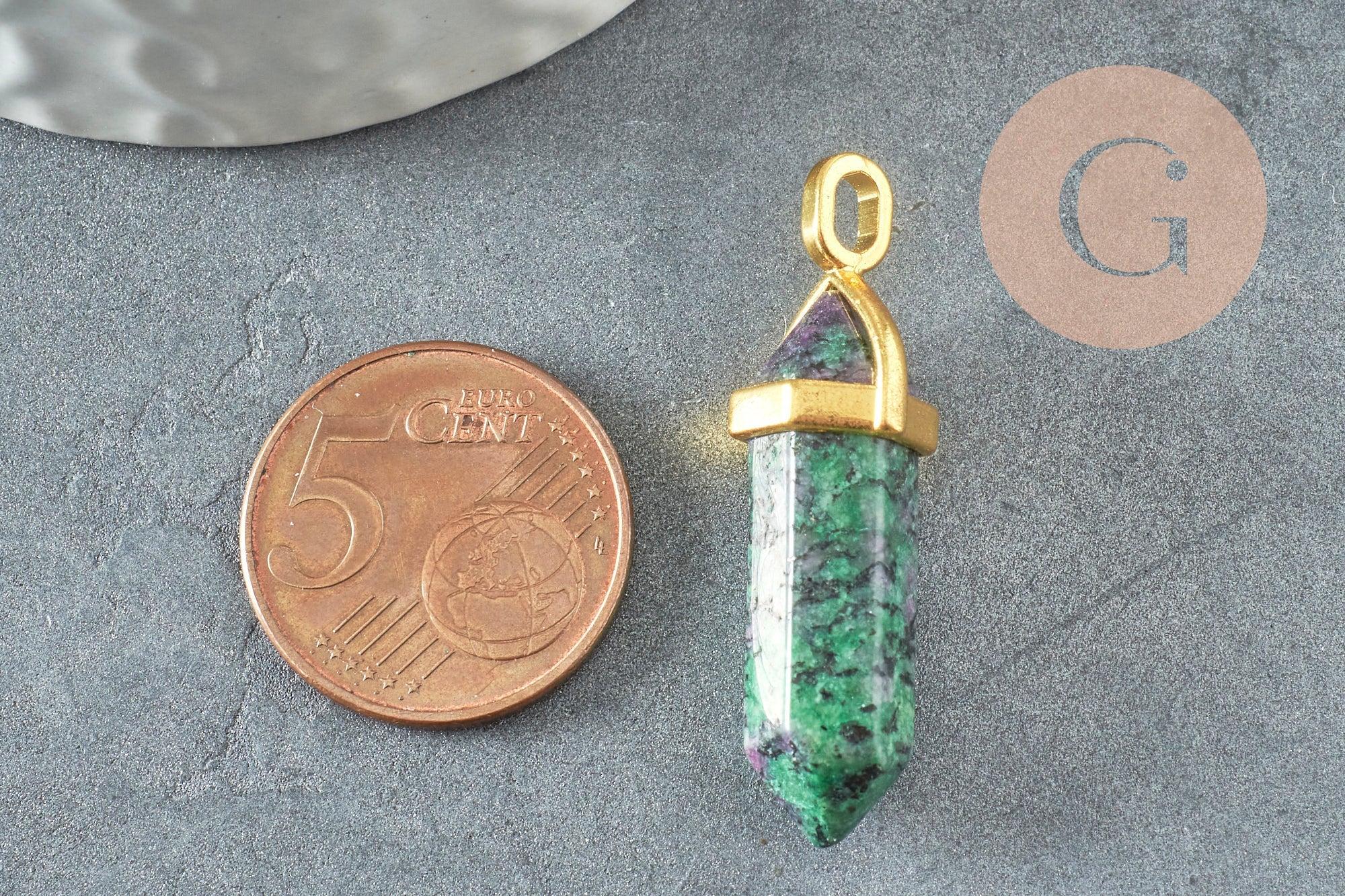 Pendentif pointe rubis zoisite naturelle laiton doré 37-40mm, pendentif bijou pierre naturelle, x1 G5206