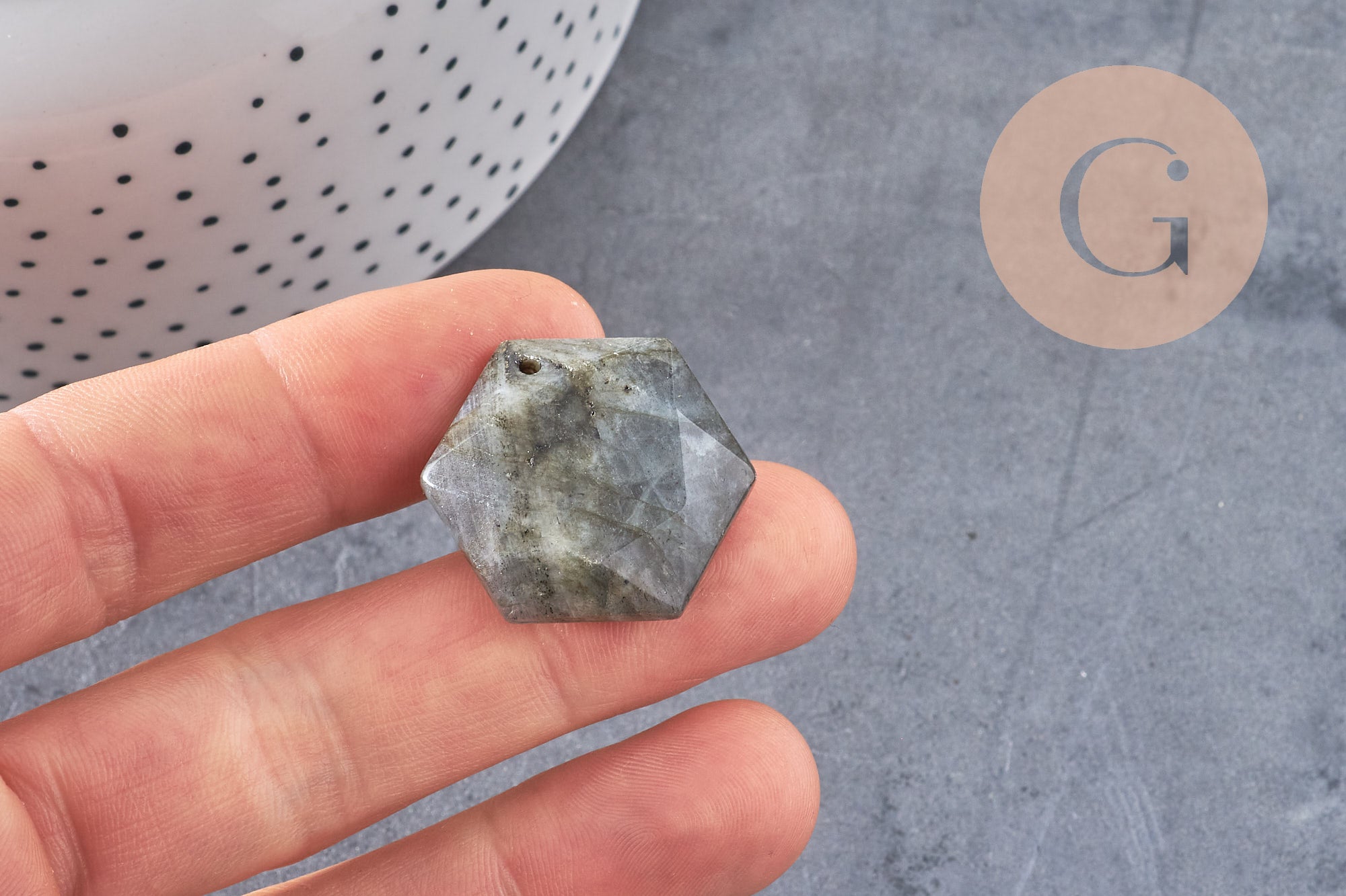 Pendentif hexagone labradorite, fournitures créatives, pendentif pierre, labradorite naturelle,création bijoux, pierre naturelle, 29mm