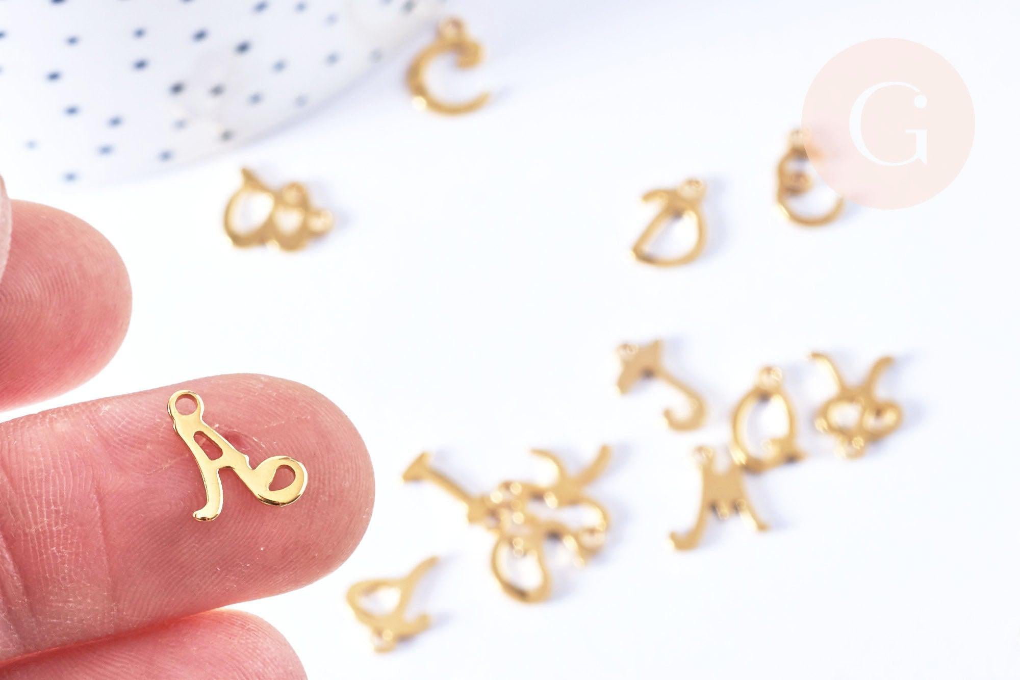 Pendentif lettre initiale acier doré inoxydable 10-12mm, pendentif dore sans nickel,pendentif lettre,initiale lettre, x1 G6840
