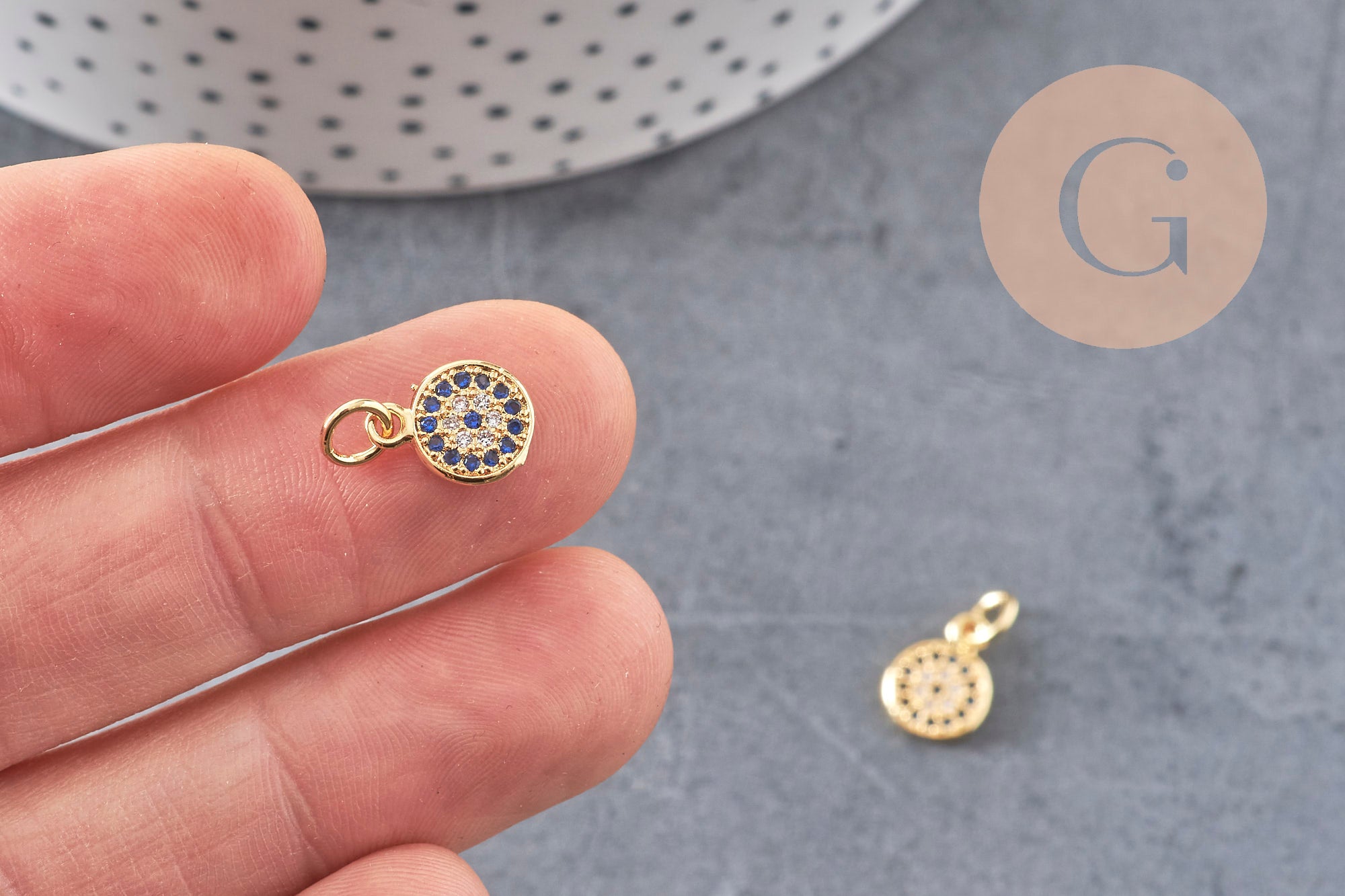 Pendentif médaille doré cristal zircon, pendentif doré,porte-bonheur,laiton dore,bijou médaille,création bijoux,17mm,l'unite