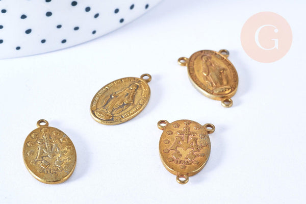 Une jolie médaille en laiton brut connecteur représentant la Vierge Marie Les bijoux aux symboles religieux reviennent à la mode. C'est un motif tendance utilisé par de nombreuses marques qui peut se porter en toute simplicité, avec ou sans sens...