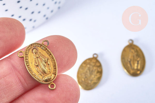 EP-Pendentif médaille ovale Vierge Marie laiton brut 3 anneaux, pendentif religion notre dame madonne, les 2 -G6559