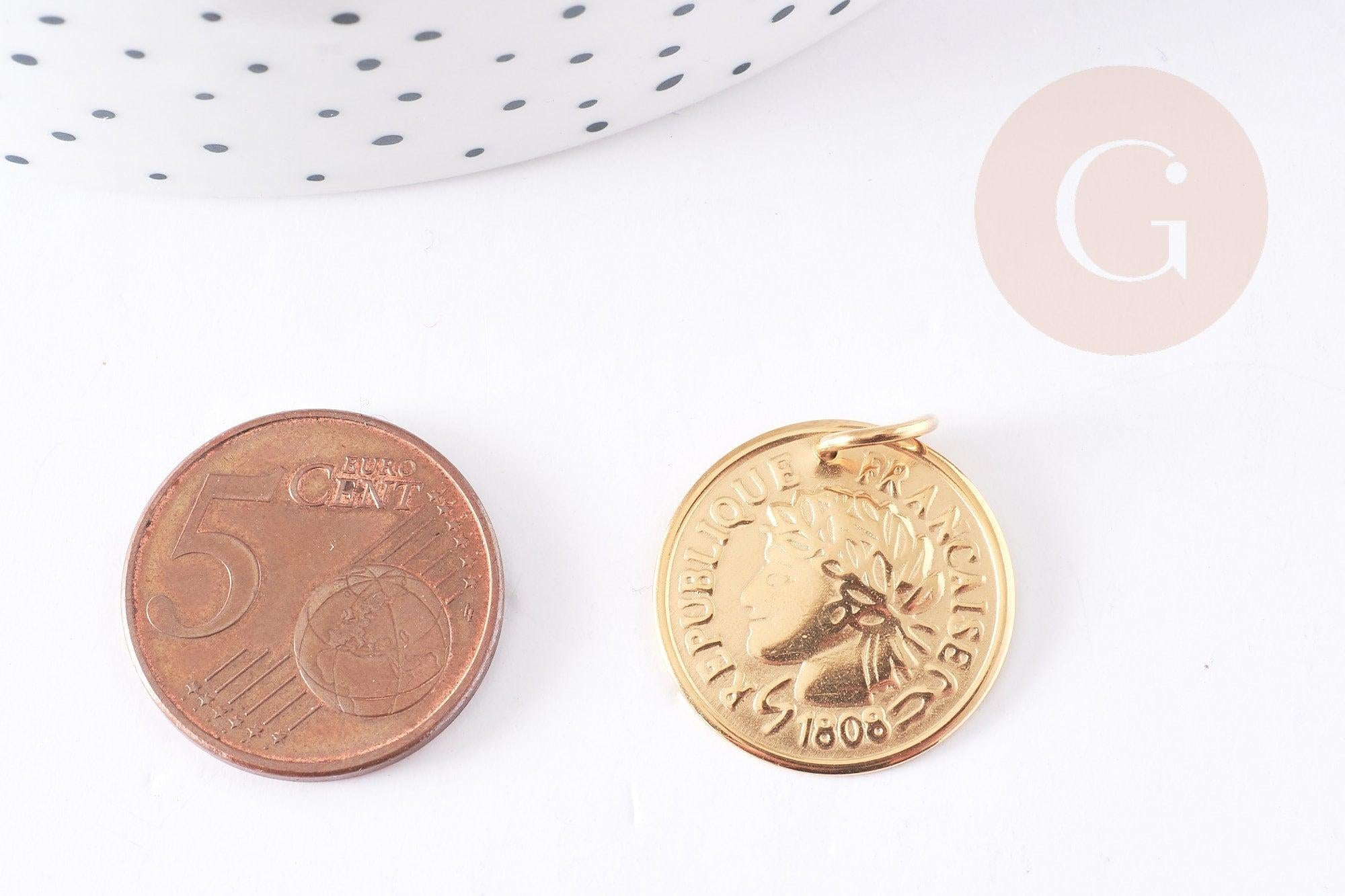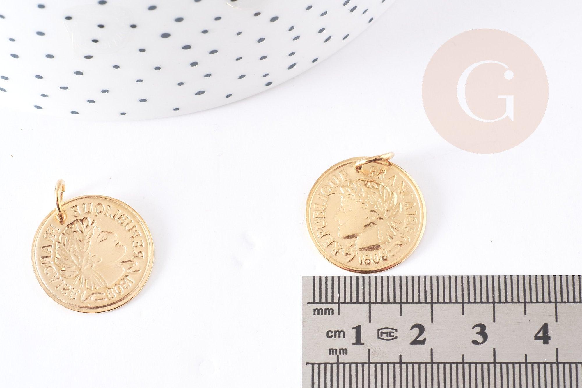 Une jolie médaille dorée en acier inoxydable représentant une pièce de monnaie.