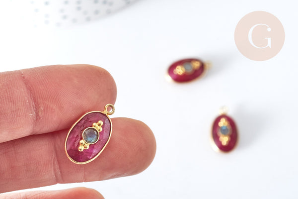 Pendentif ovale amulette rubis naturel argent 925 doré 18K 30mm, pendentif pierre naturelle, x1 G7716