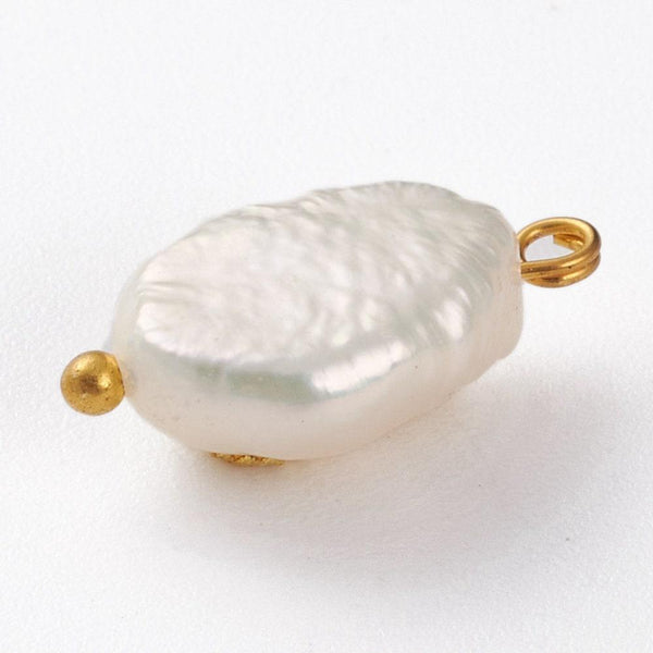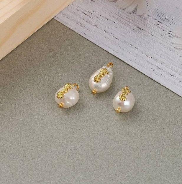Pendentif perle naturelle Keshi Hippocampe doré 13-16mm,porte bonheur,perle eau douce,création bijou,perle naturelle blanche,x1 (G6091)