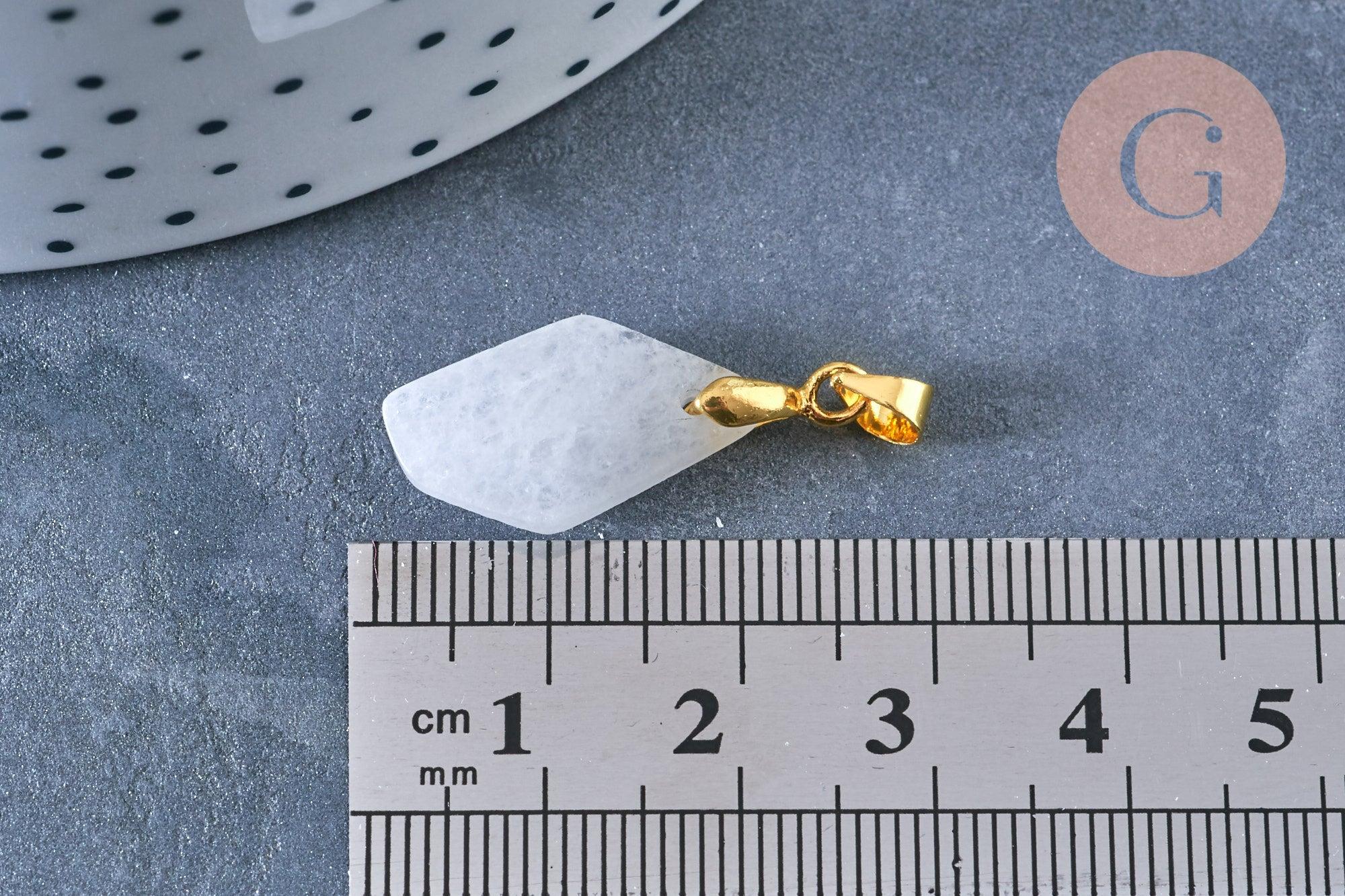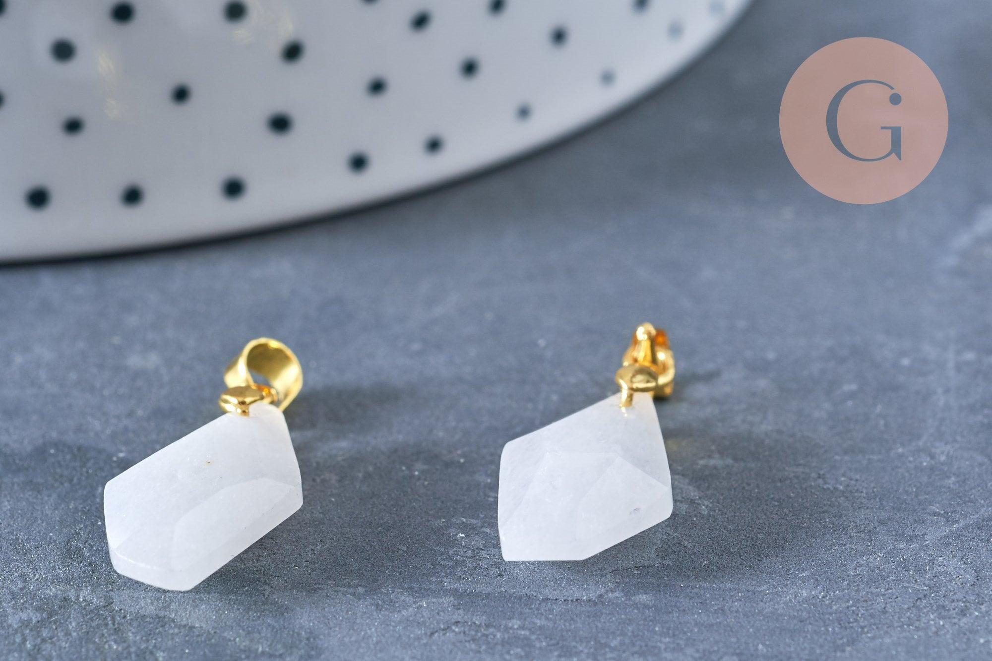 Craquez pour ce pendentif polygone facettée en jade blanc avec sa bélière en laiton doré.