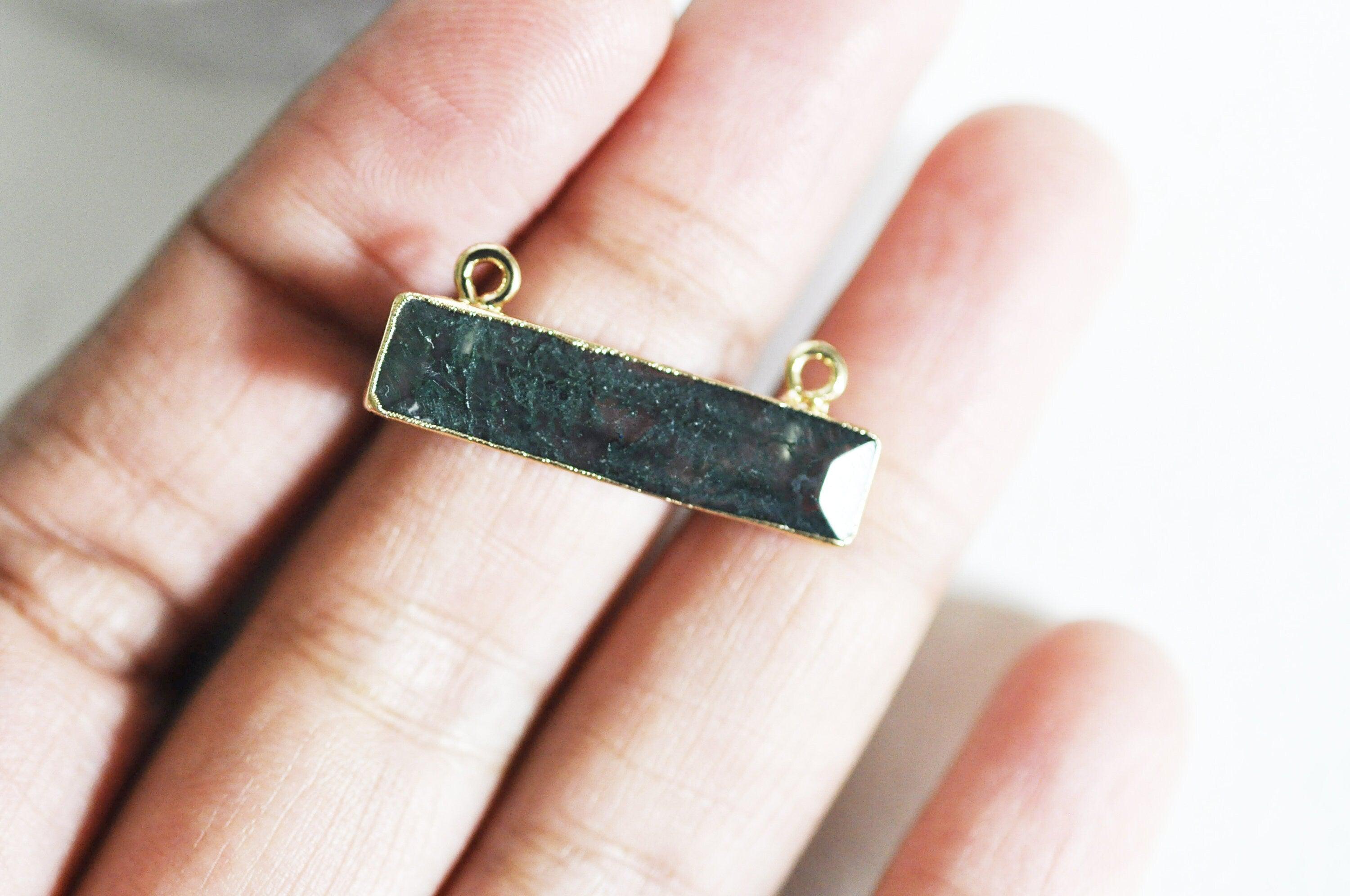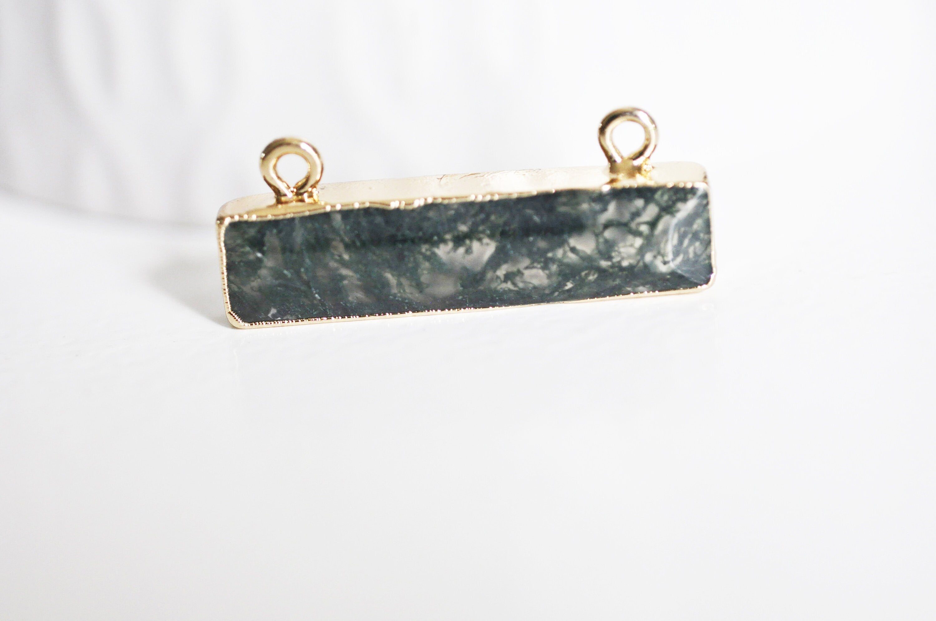Pendentif rectangle agate verte mousse,pendentif bijoux, pendentif agate,pendentif pierre, agate naturelle,agate mousse,30.5mm Craquez pour ce petit pendentif en agate verte avec son support doré en forme de rectangle composé de deux anneaux sur chaque extrémité de la partie supérieure. Vous...