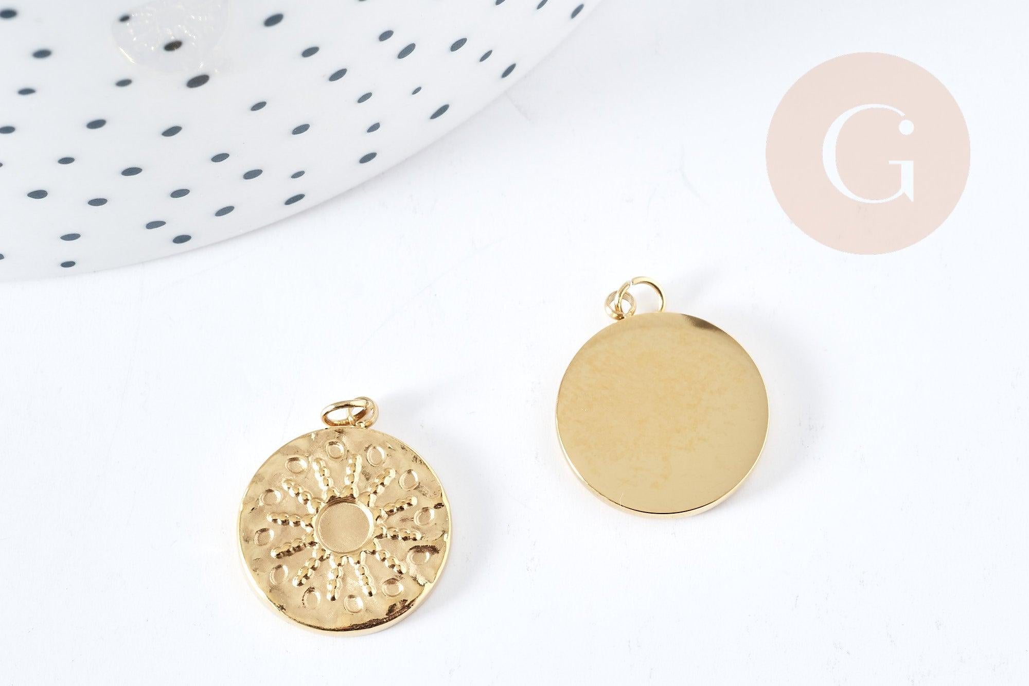 Ce pendentif rond soleil en acier inoxydable 304 doré est un bijou à la fois élégant et symbolique. Sa forme ronde représente l'infini et l'éternité, tandis que le soleil évoque la lumière, l'énergie et la force.
