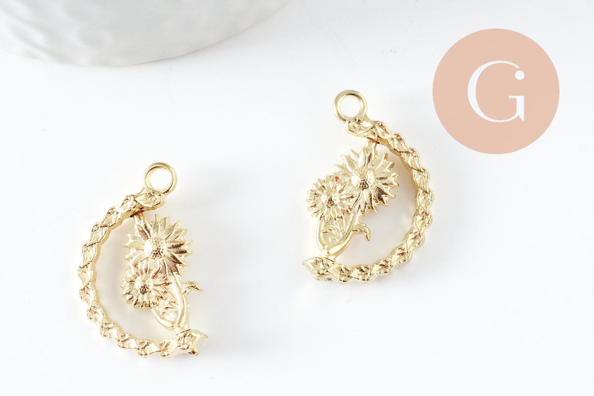 Laissez-vous charmer par ces ravissants pendentifs rotatifs fleurs en zamac doré, poétiques et délicats. Chaque pendentif tourne réellement, apportant une touche ludique, raffinée et unique à vos créations.