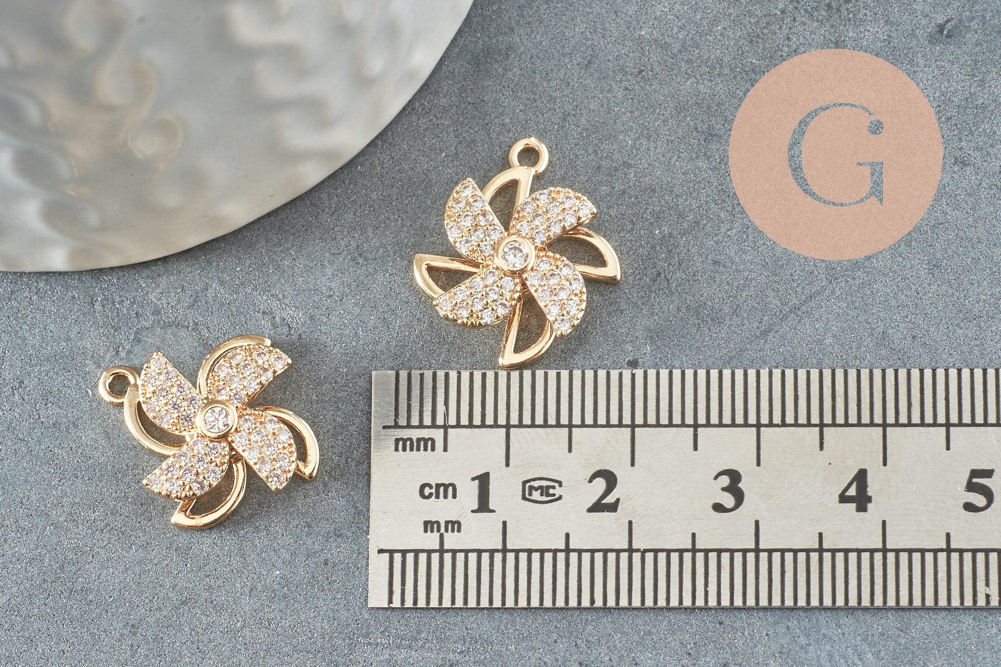 Ce pendentif moulin à vent rotatif doré en laiton plaqué or 18K est une pièce poétique et lumineuse qui tournera délicatement au gré de vos mouvements. Décoré de zircons blancs scintillants, il apportera une touche raffinée et féerique à vos créations DIY.
