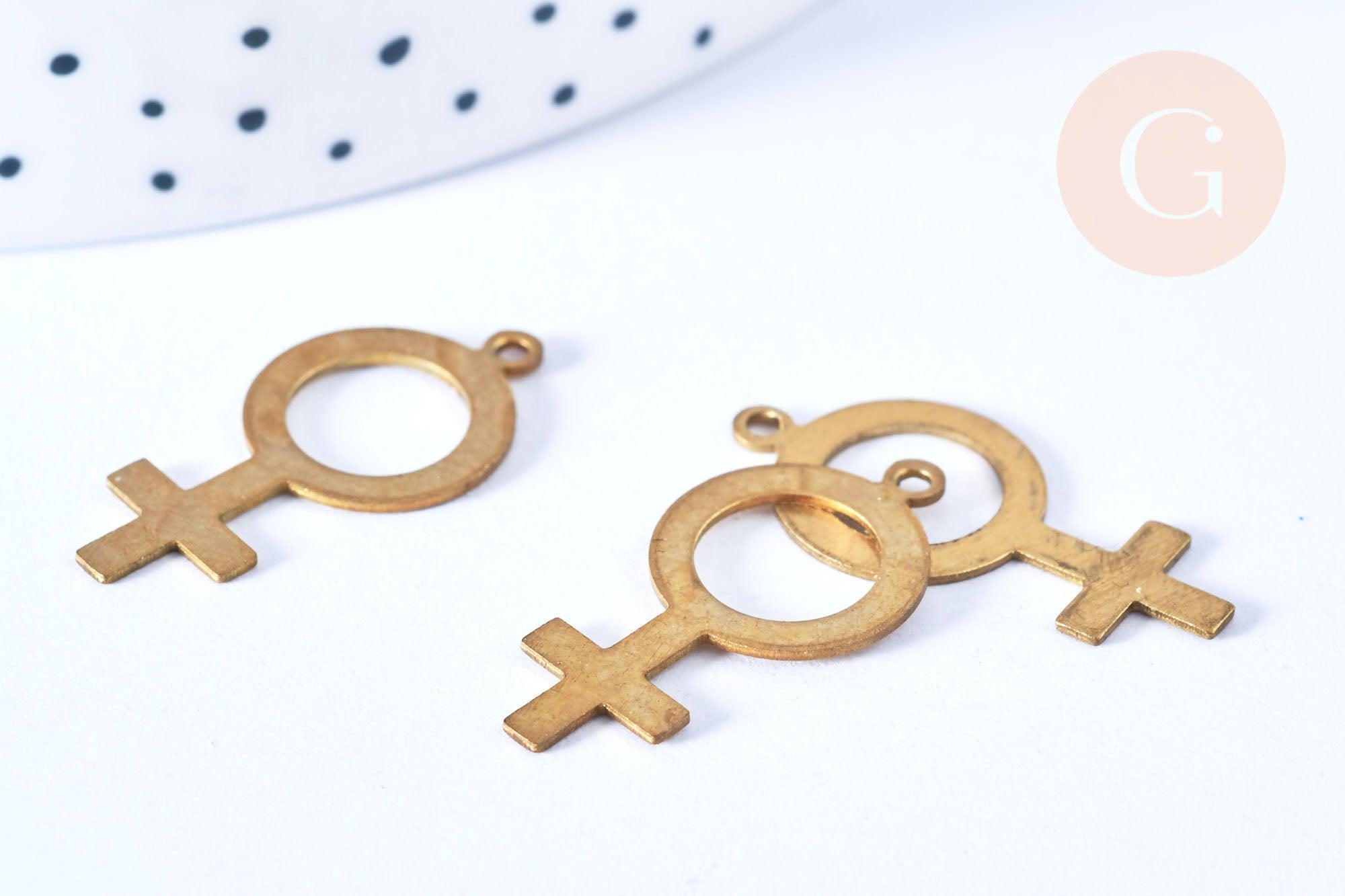 Adoptez ce pendentif représentant le symbole de la femme en laiton brut, sans nickel. Celui-ci devra être doré chez un fournisseur soit en laiton doré 3 microns, soit en plaqué argent platine.