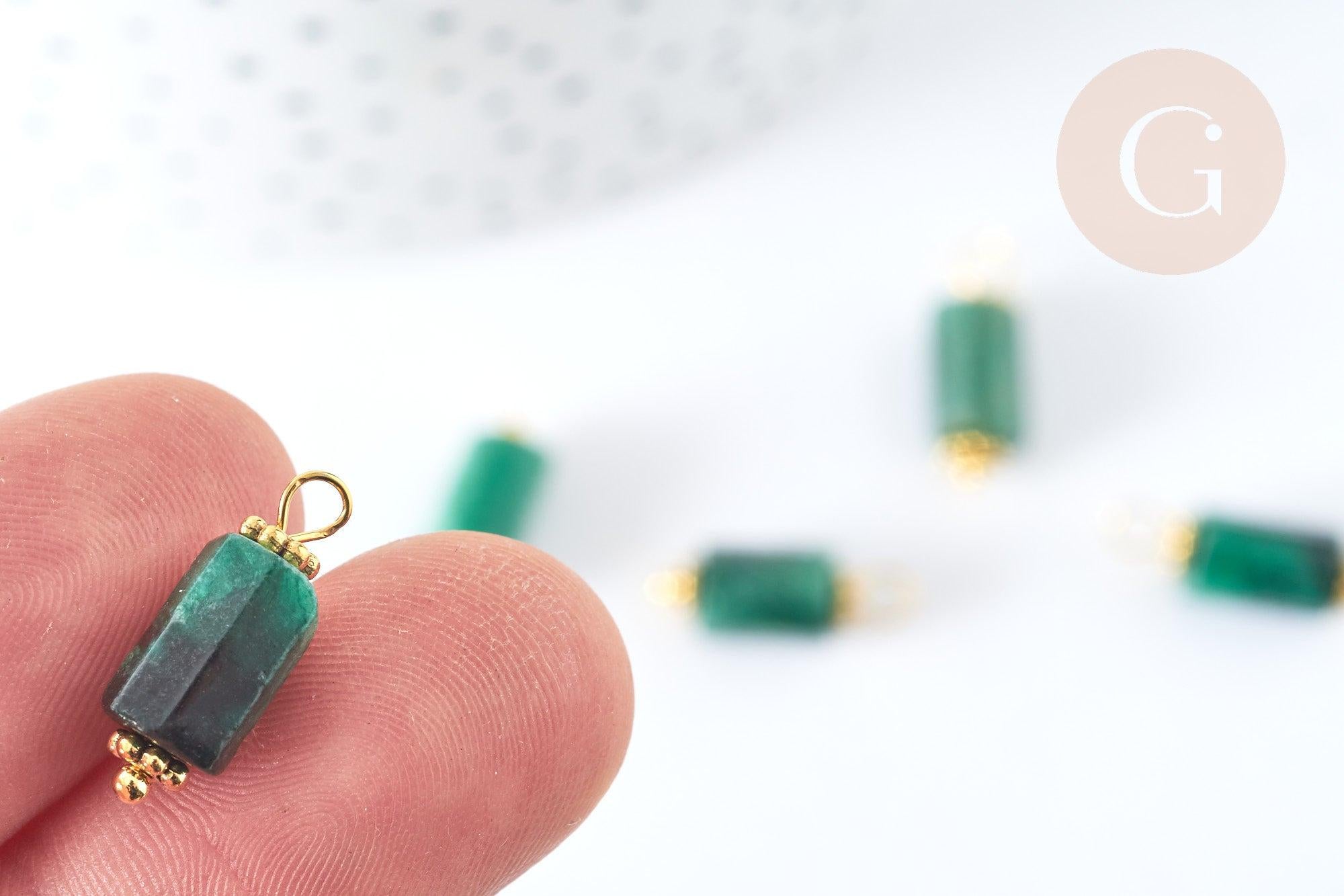 Pendentif Tube Colonne Emeraude naturelle laiton doré verte 18mm, création bijoux pierre naturelle, x1 G7923