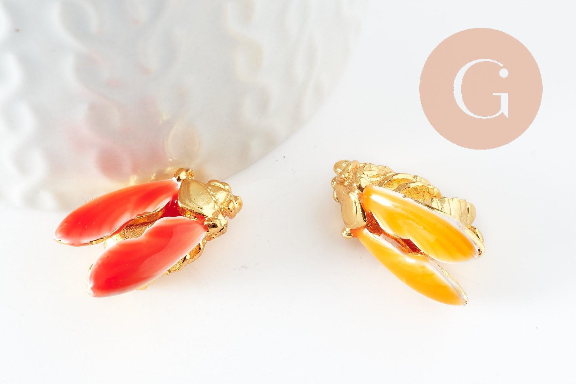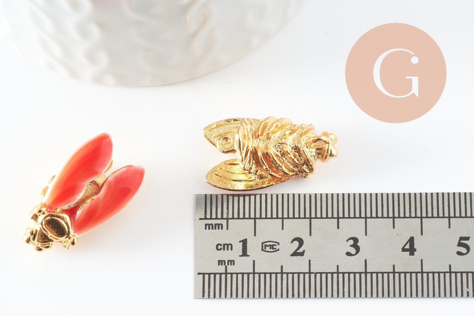 Pendentifs doré cigale émaillé, pendentif insecte métal doré, pendentif nature,création bijoux,24.5mm, l'unité Des apprêts pour vos colliers, bracelets et sautoir avec élégance . Métal doré : alliage Dimensions : Largeur : 14mm Longueur 24.5mm Epaisseur:12mm Trou:1.6 D'autres apprêts dorés sur...