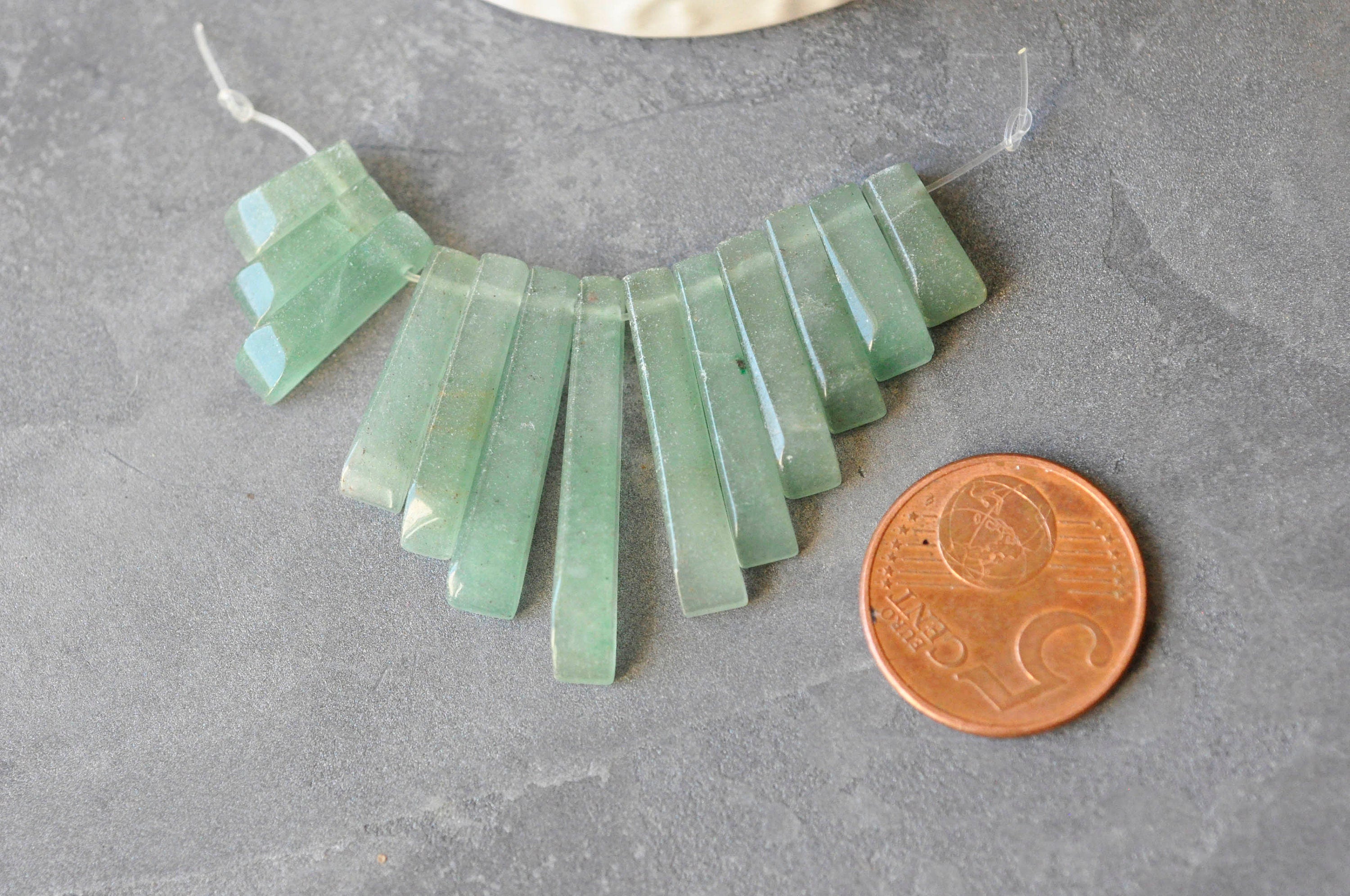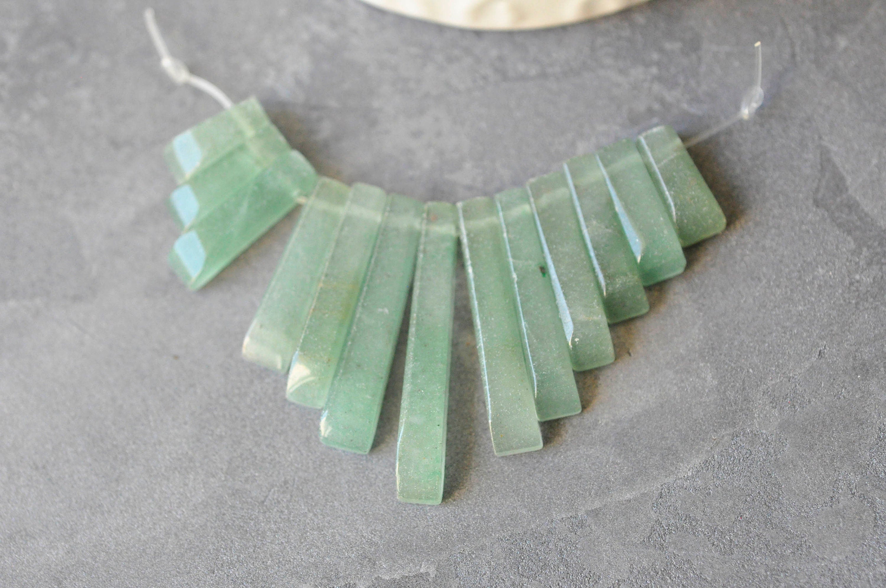 Un dégradé de perles rectangle en aventurine naturelle pour la créations de colliers plastrons de toute beauté.