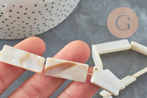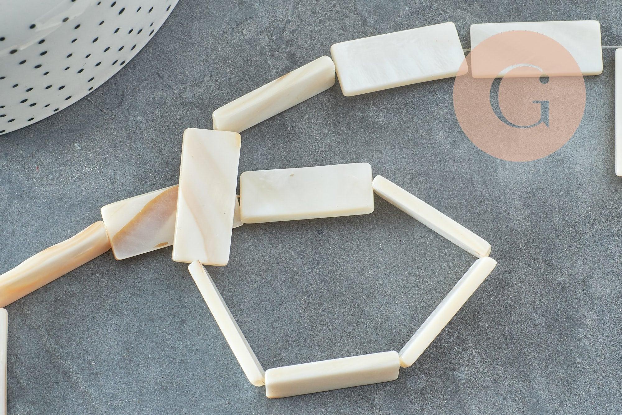 Apportez une touche d'élégance intemporelle à vos créations avec ce fil de perles rectangulaires en nacre blanche naturelle.