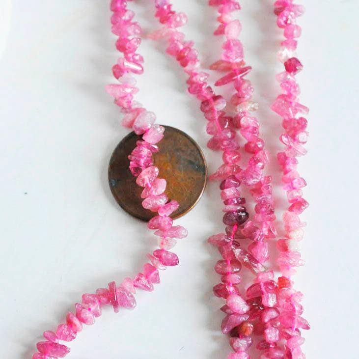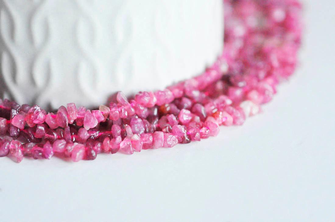 Ces perles chips en tourmaline naturelle présentent de magnifiques teintes de rose fuchsia. Idéales pour des créations modernes et minérales, elles ajoutent une touche de couleur vibrante à vos bijoux. Chaque perle est unique avec une forme irrégulière, ce qui apporte un charme brut et naturel à vos créations.
