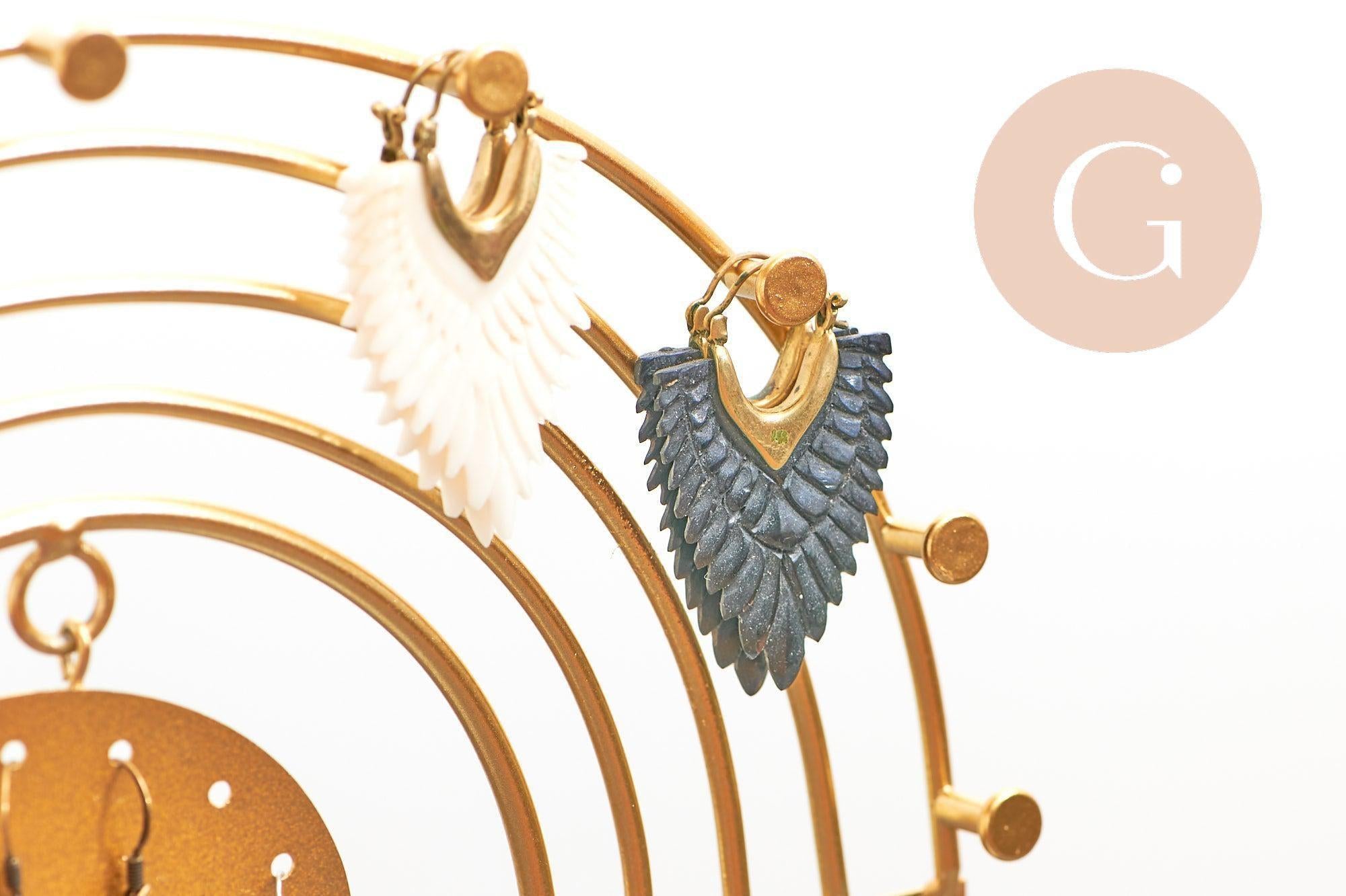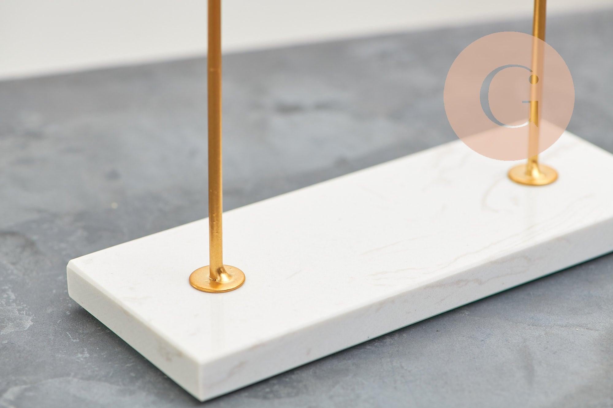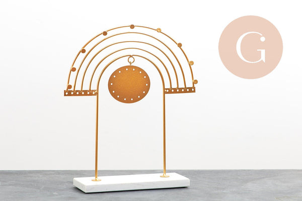 Conçu pour les boucles d'oreilles et colliers, il combine la beauté intemporelle du laiton doré et l'élégance du marbre, tout en offrant un design en arc-en-ciel subtil.