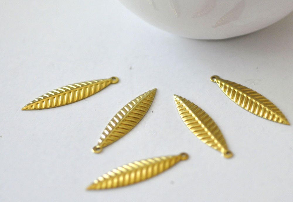 Breloque feuille laiton brut , fournitures créatives, pendentif sans nickel,creation bijoux, pendentif laiton,35mm, à l'unite Pour réaliser de magnifiques colliers, boucles et bracelets, adoptez ces navettes façon feuille en laiton brut doré. Largeur : 8mm longueur : 35mm C'est un...