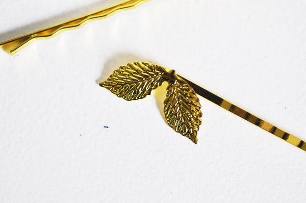 EP-Supports de barrette fer doré feuille 27mm, x5 (G4386)