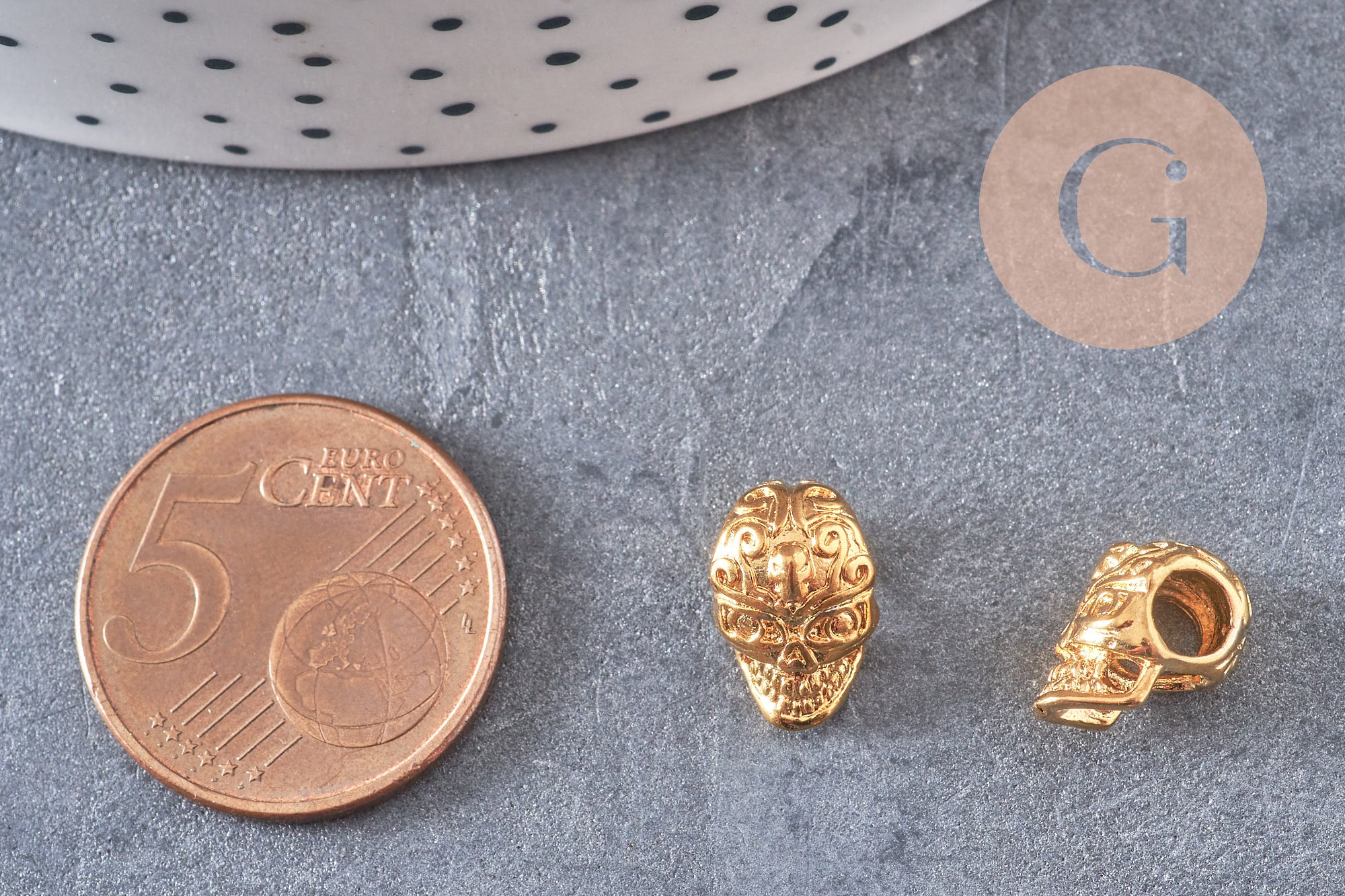 Adoptez ce petit pendentif tête de mort en laiton doré 24K, des apprêts rock et romantiques pour réaliser tous les bijoux.