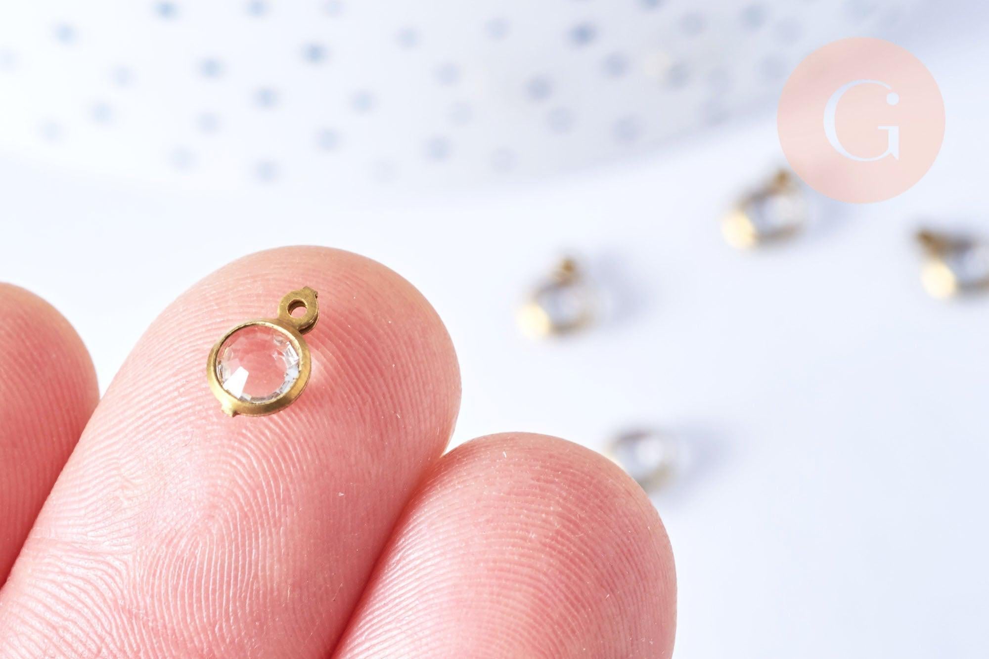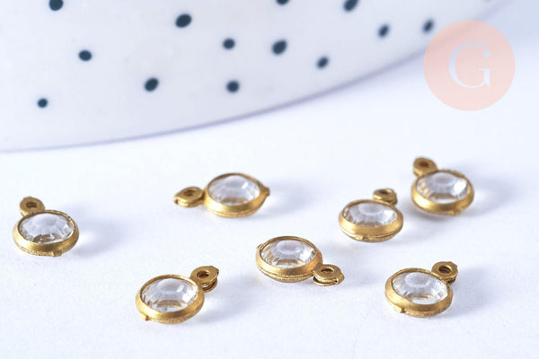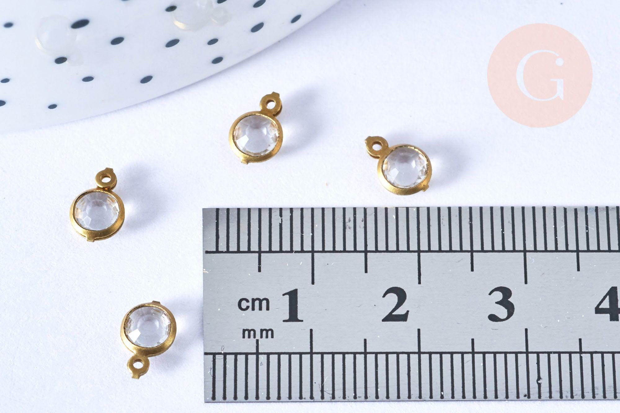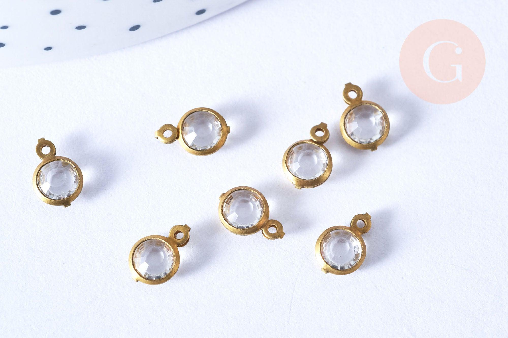 Réalisez de nombreux bijoux fantaisie DIY brillants et lumineux grâce à ce pendentif rond en laiton brut et cristal transparent.