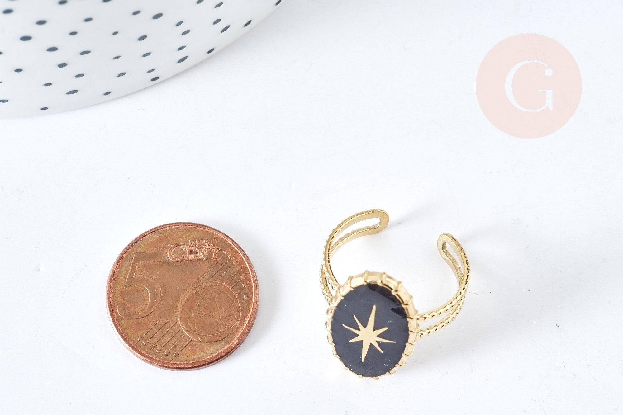 Cette bague fine en acier doré est un bijou intemporel et très chic pour les femmes. Avec son design unique, elle est décorée d'un motif émaillé en noir avec un décor d'étoile dorée, ajoutant une touche de sophistication à n'importe quelle tenue.