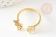 Bague réglable laiton feuille laurier zircons, creation bijoux,bague femme cadeau anniversaire, support bague laiton doré,17mm