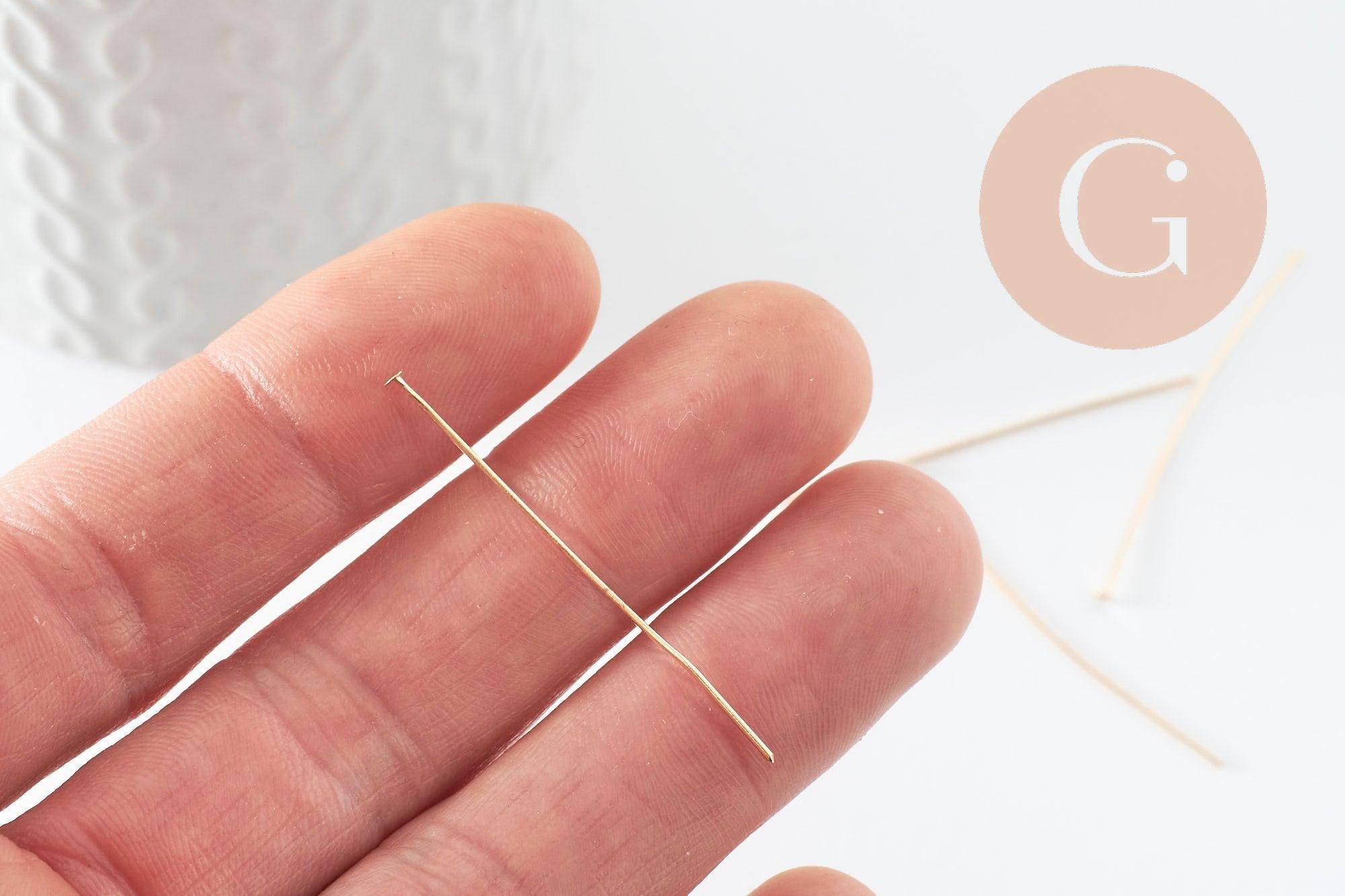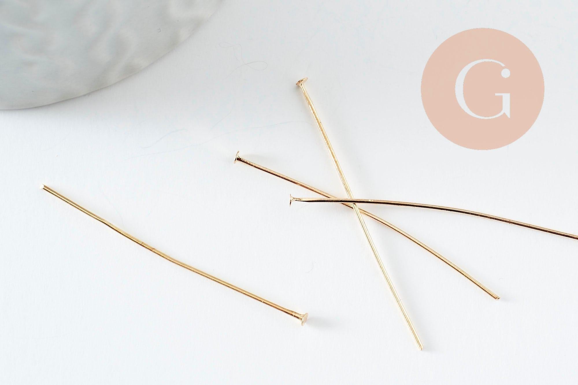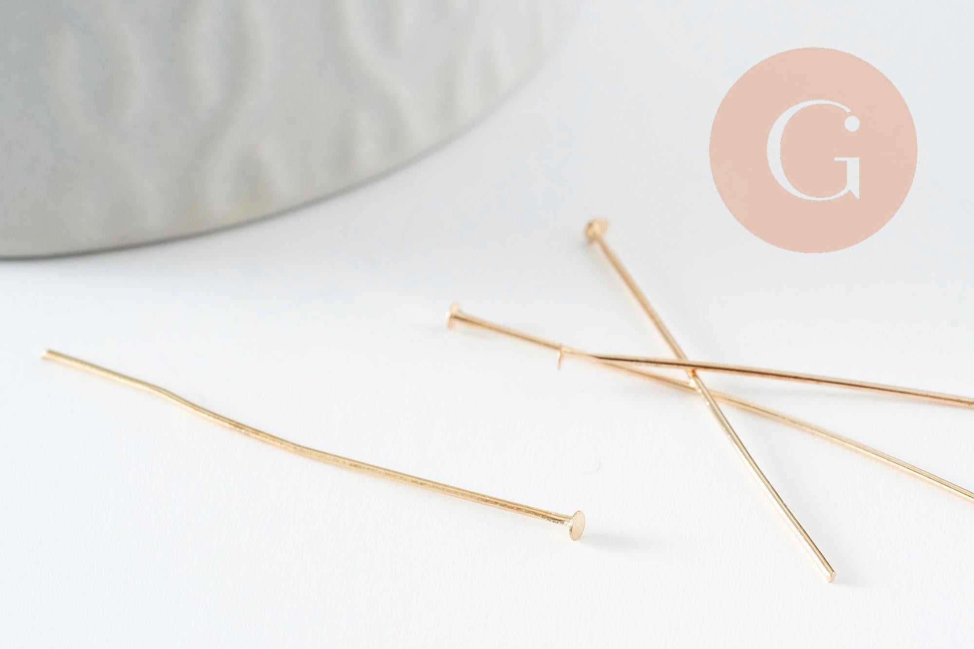 Les tiges à tête clou en fer doré 40mm sont les apprêts idéaux pour réaliser de nombreux bijoux fantaisie. Ce sont des apprêts indispensables dans le montage de bijoux qui vous permettent de réaliser des breloques et pendentifs et/ou d'enfiler des perles et pierres.