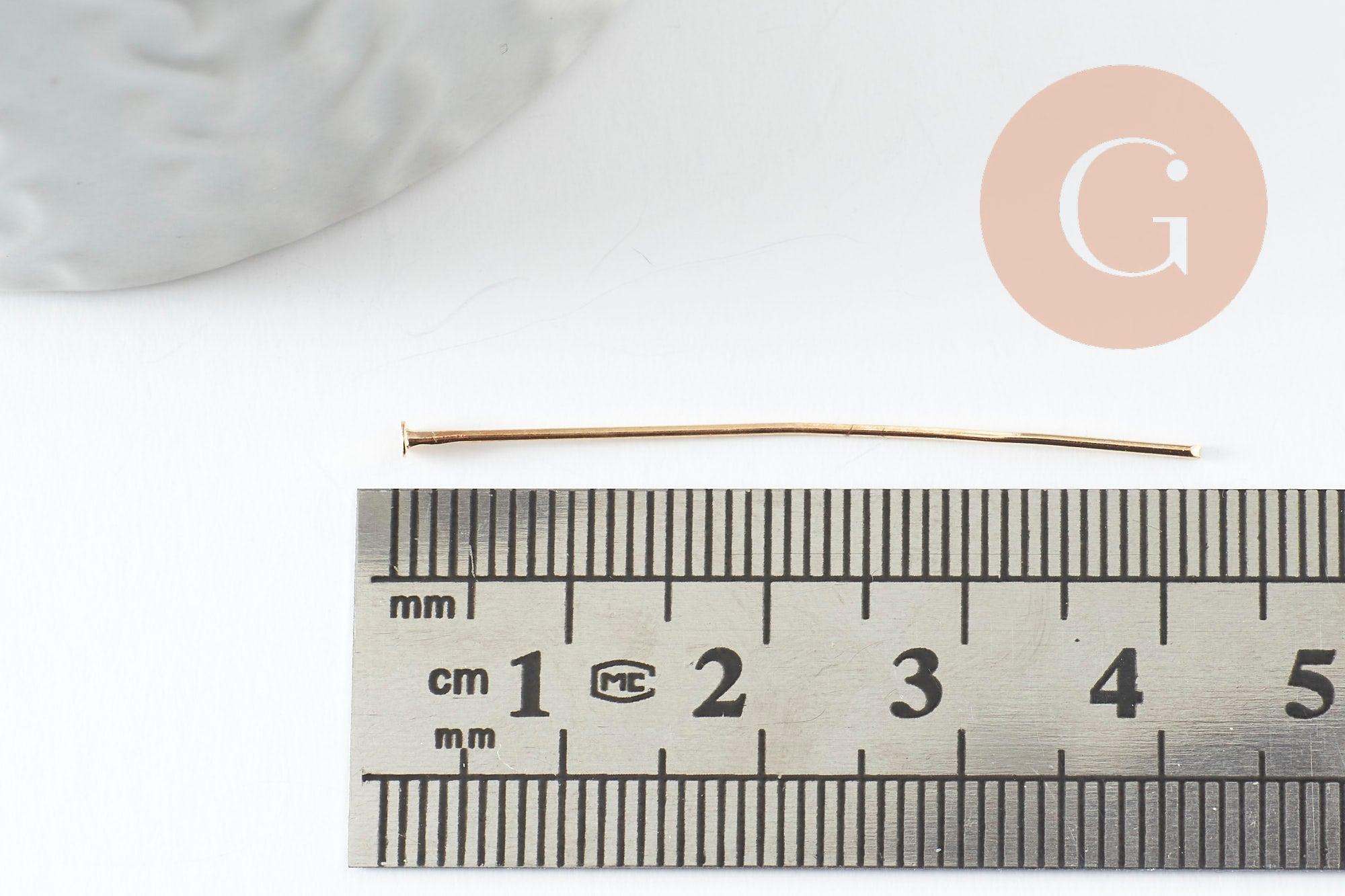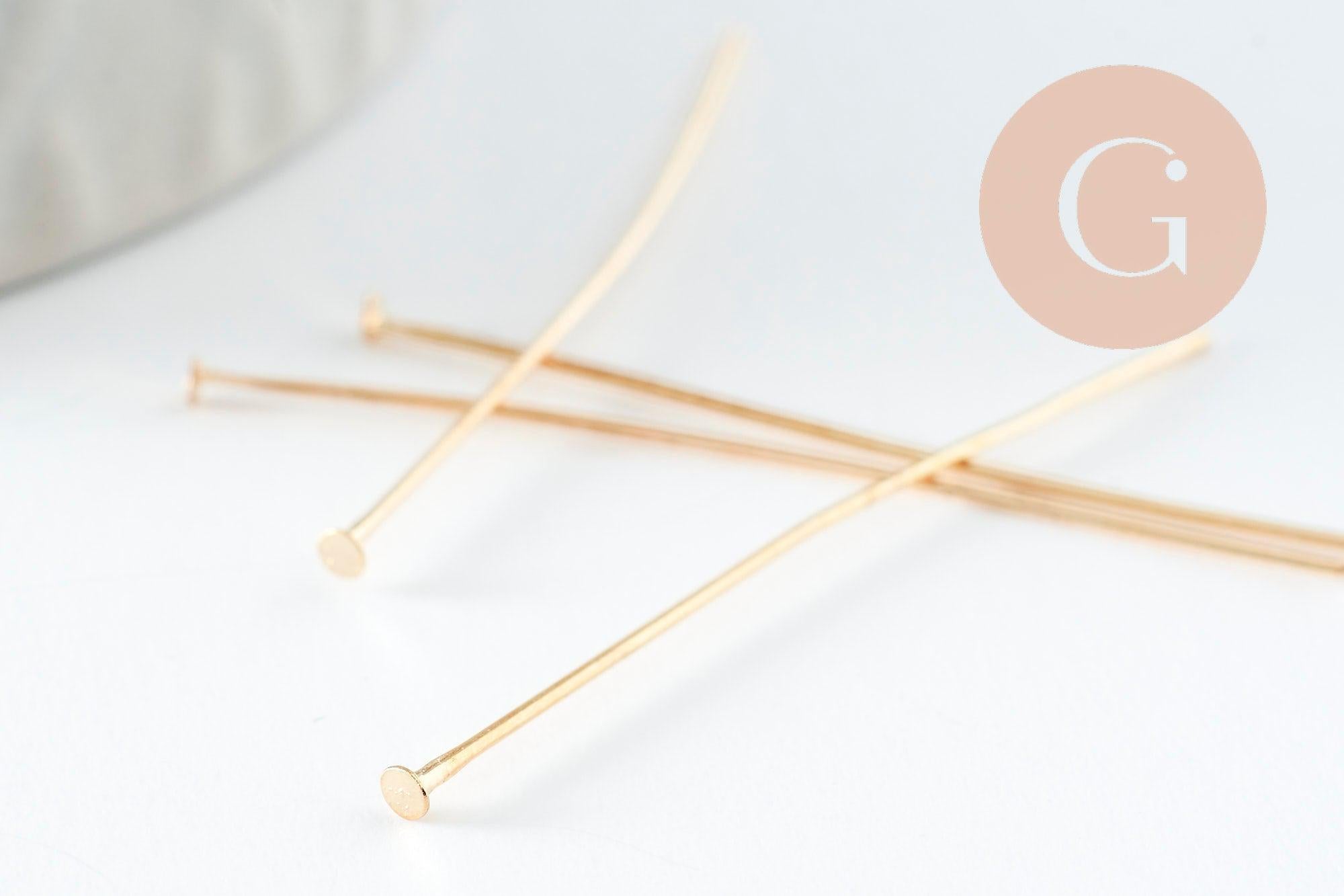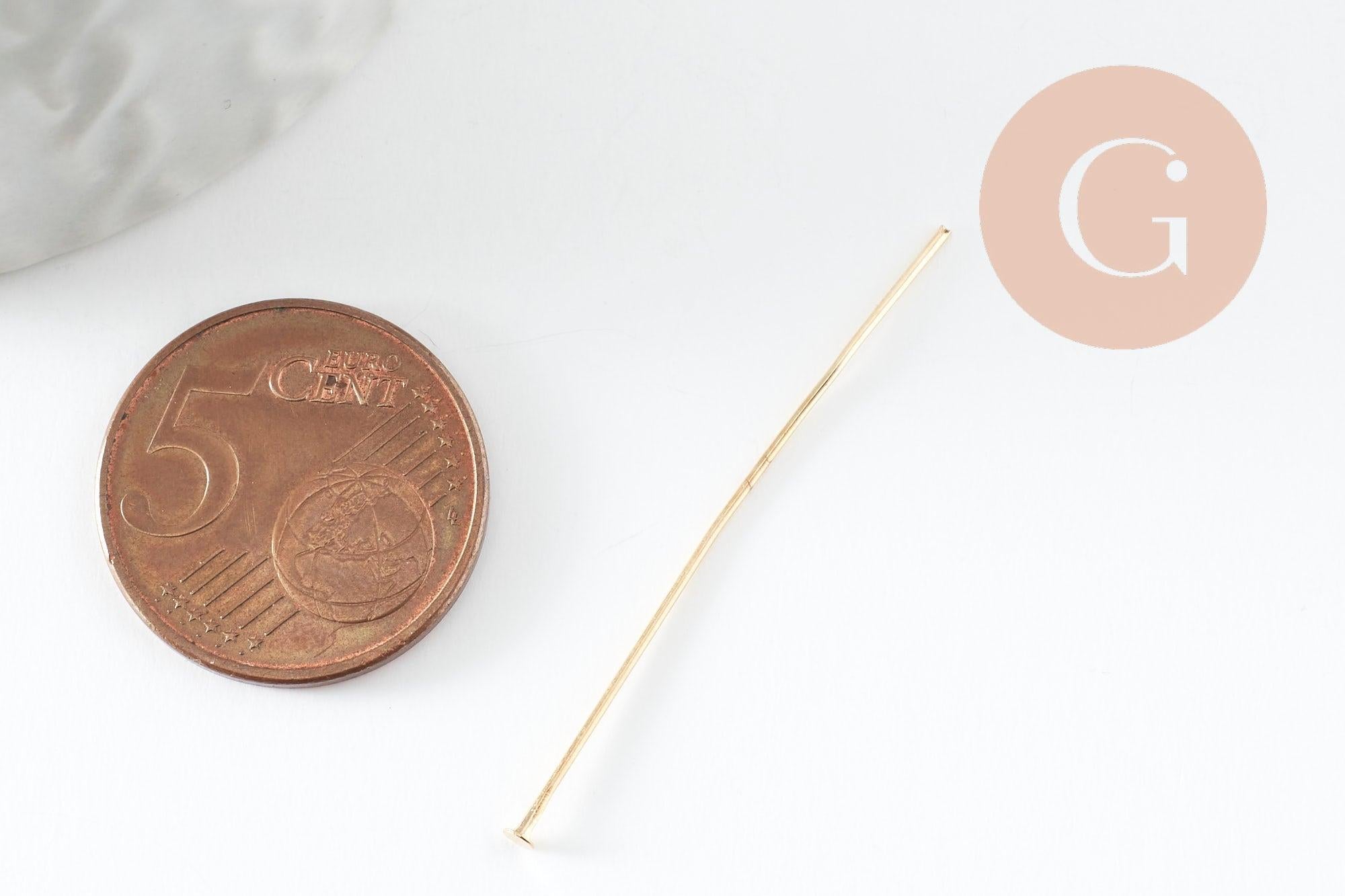 Les tiges à tête clou en fer doré 40mm sont les apprêts idéaux pour réaliser de nombreux bijoux fantaisie. Ce sont des apprêts indispensables dans le montage de bijoux qui vous permettent de réaliser des breloques et pendentifs et/ou d'enfiler des perles et pierres.