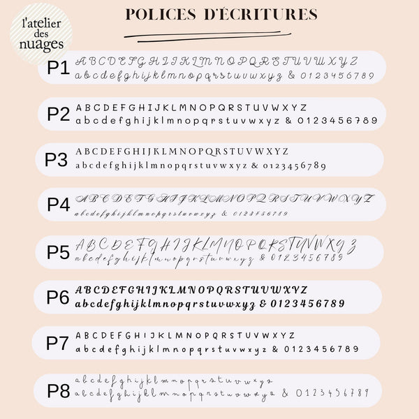 * Gravure avec une police délicate et créative réalisée avec amour dans notre atelier
