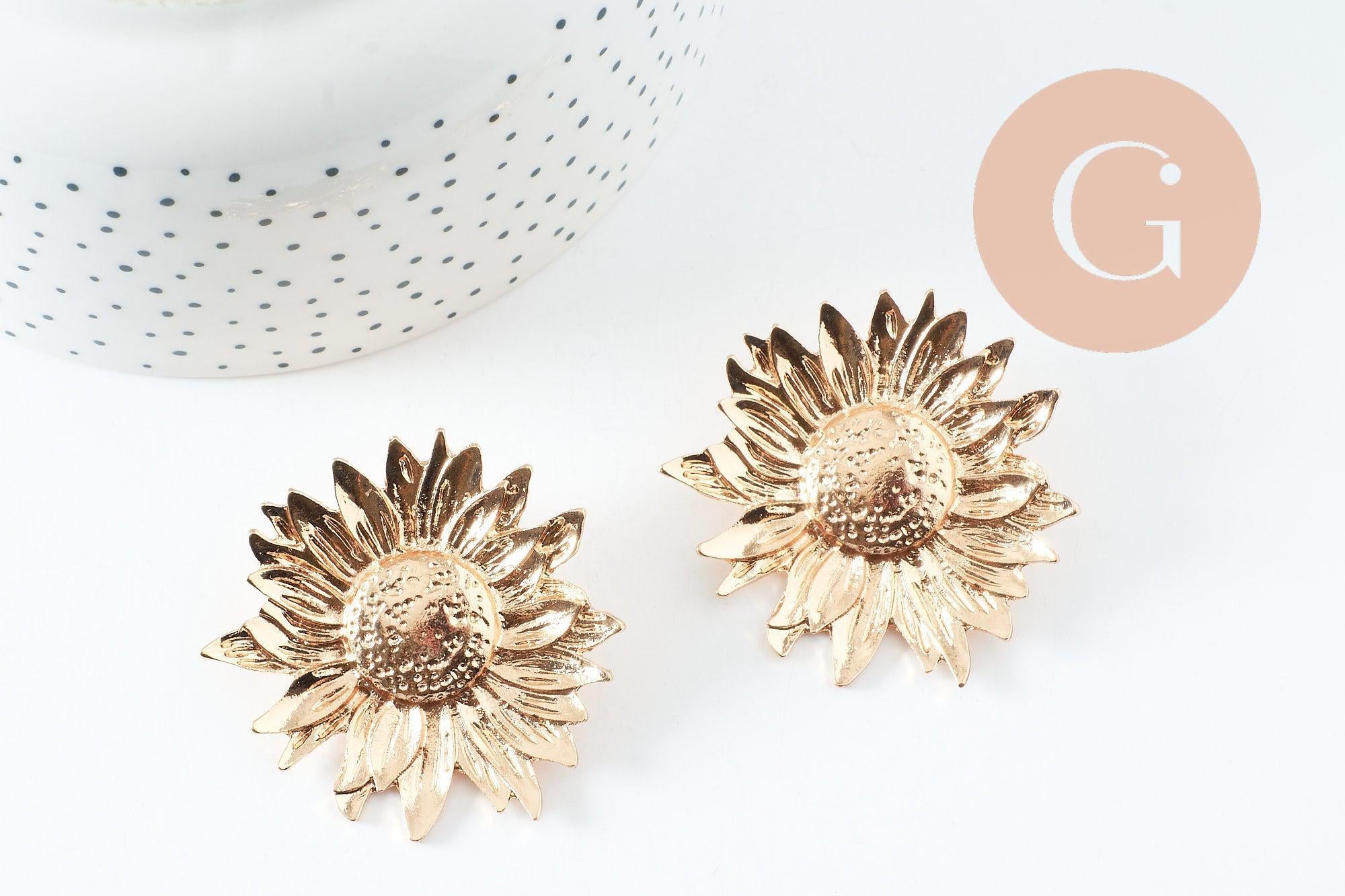 Illuminez vos créations avec ces superbes boucles d'oreilles en forme de fleur de tournesol XXL, réalisées en zamac doré.