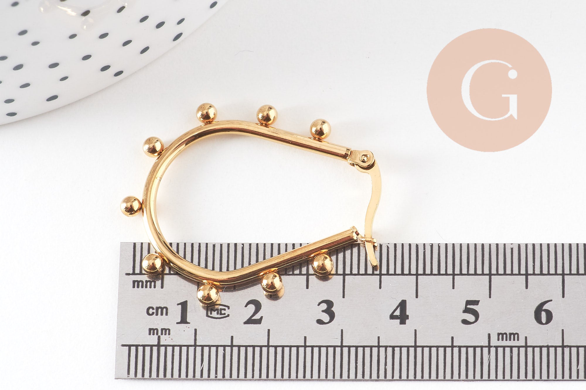 Créoles goutte acier doré boules, oreille percée,sans nickel, boucles acier, 36.2mm la paire, (G4202)