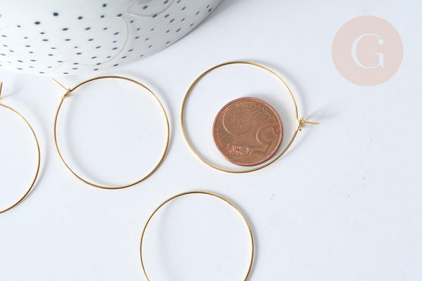 Anneaux créoles en acier 304 doré inoxydable IP 35mm, x20-50 (G7705)