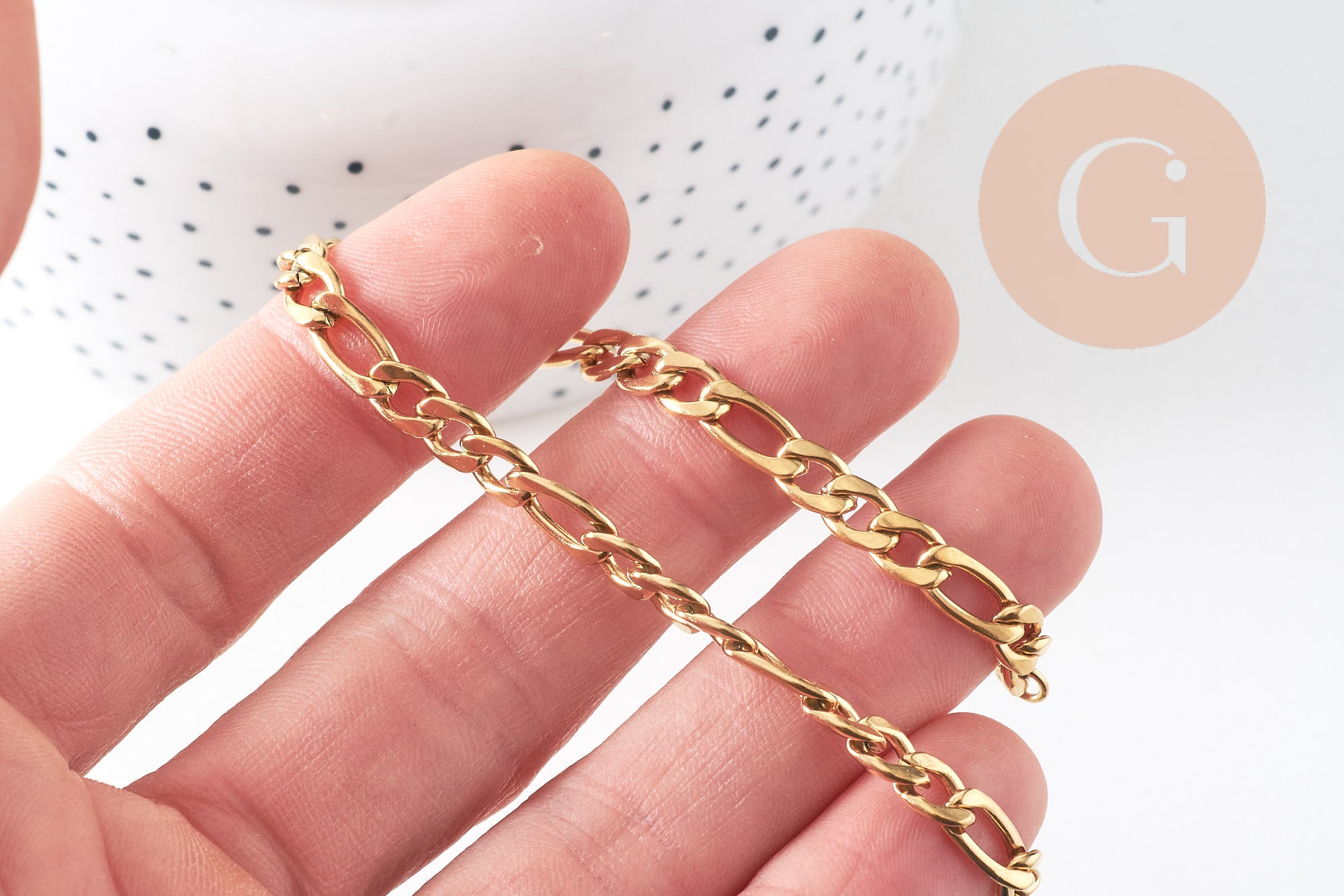 Bracelet grosse maille figaro gourmette acier doré 14k, création bijoux,bracelet acier doré inoxydable,sans nickel, 20cm